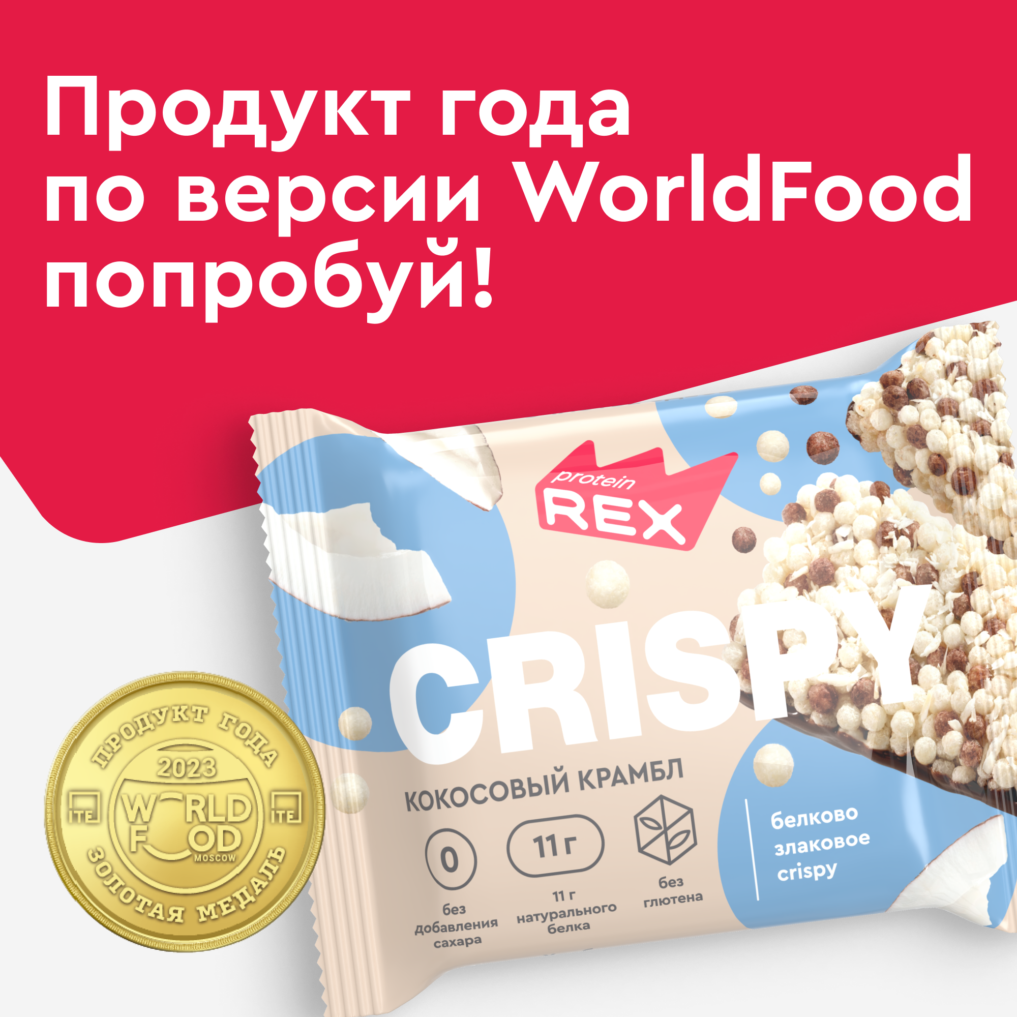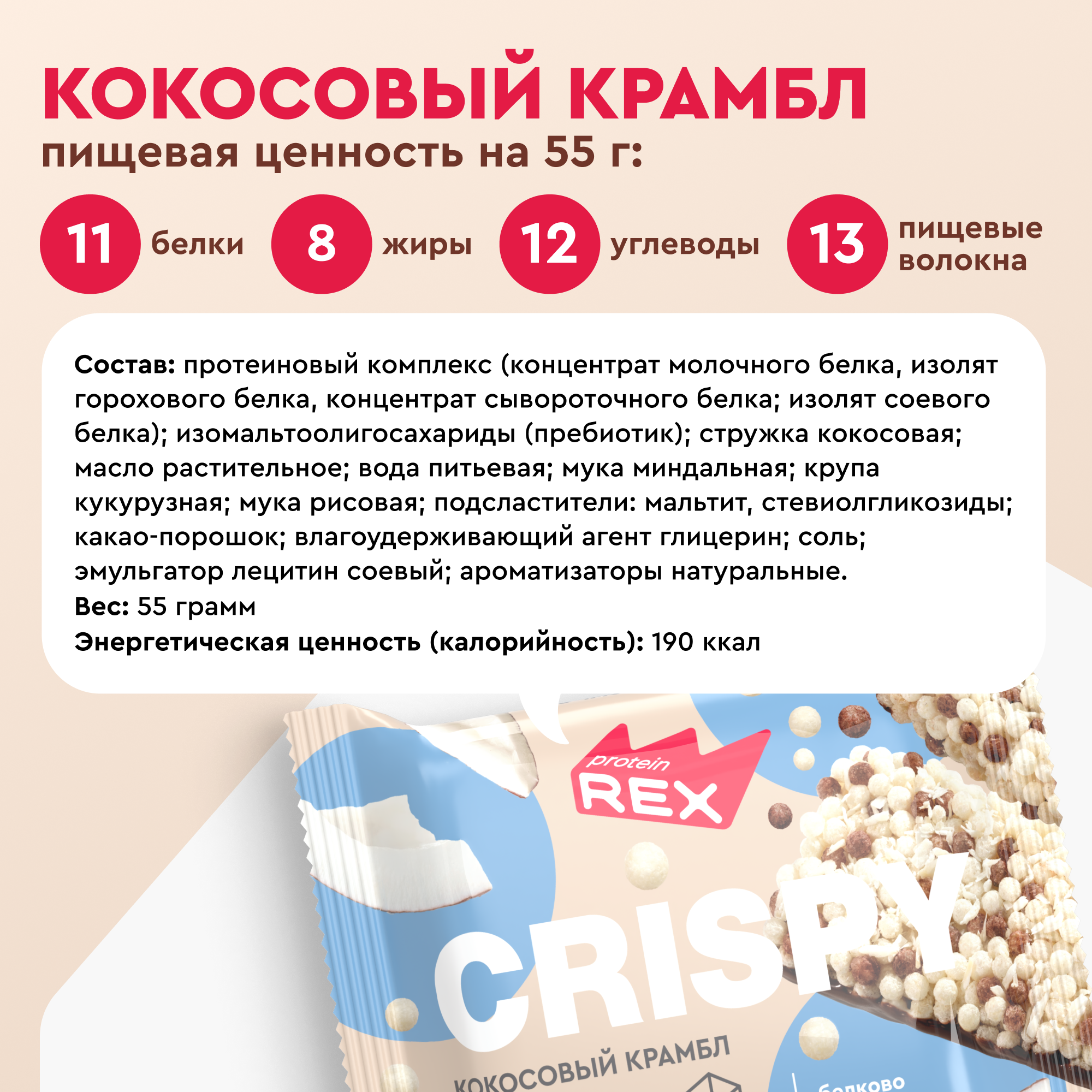 Хлебцы протеиновые ProteinRex Crispy Кокосовый крамбл без сахара, 12шт х 55 г, 190 ккал, десерт, спортивное питание, ПП сладости, спортивное печенье