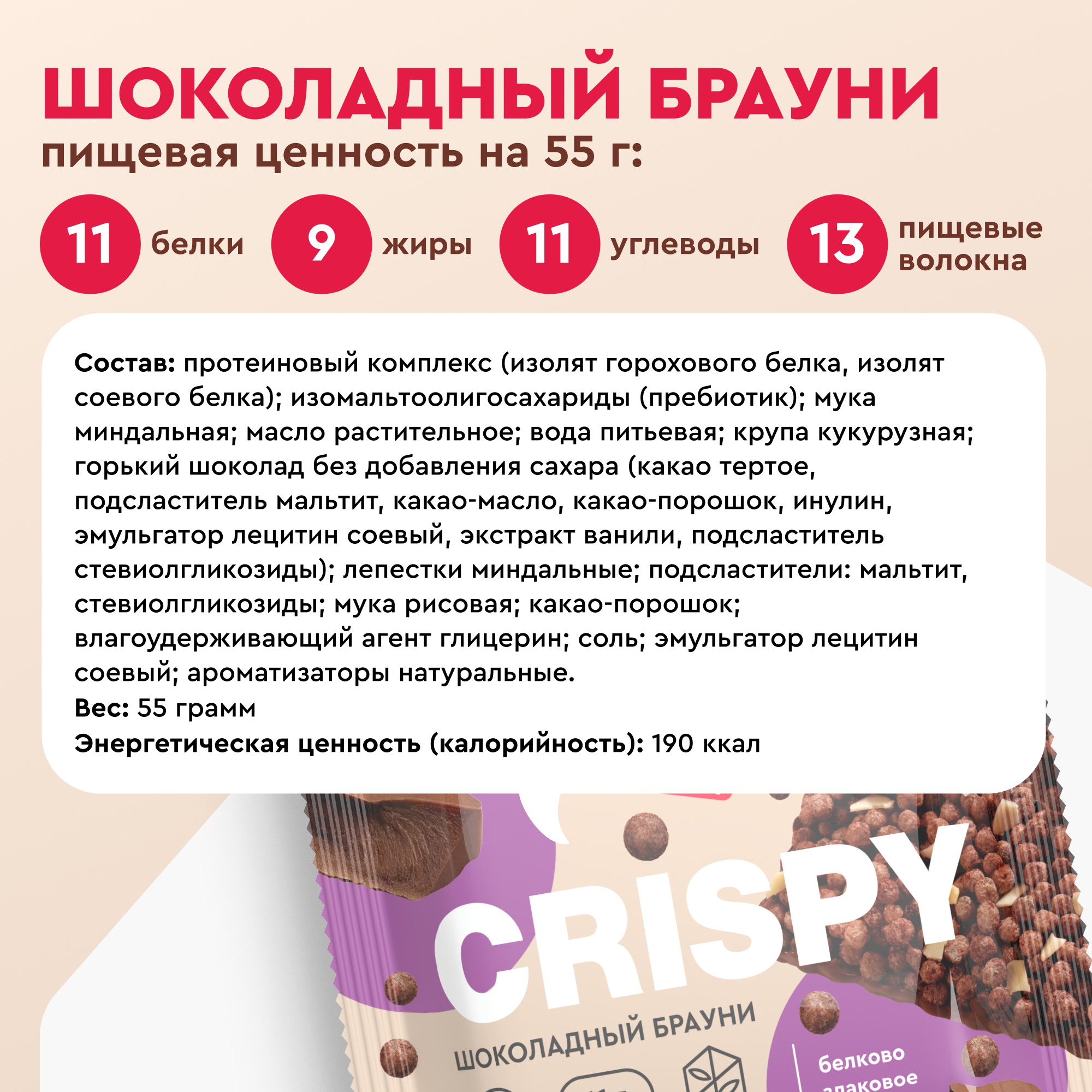 Протеино-злаковые хлебцы CRISPY 20% 55 г, 12 шт, вкус: шоколадный брауни