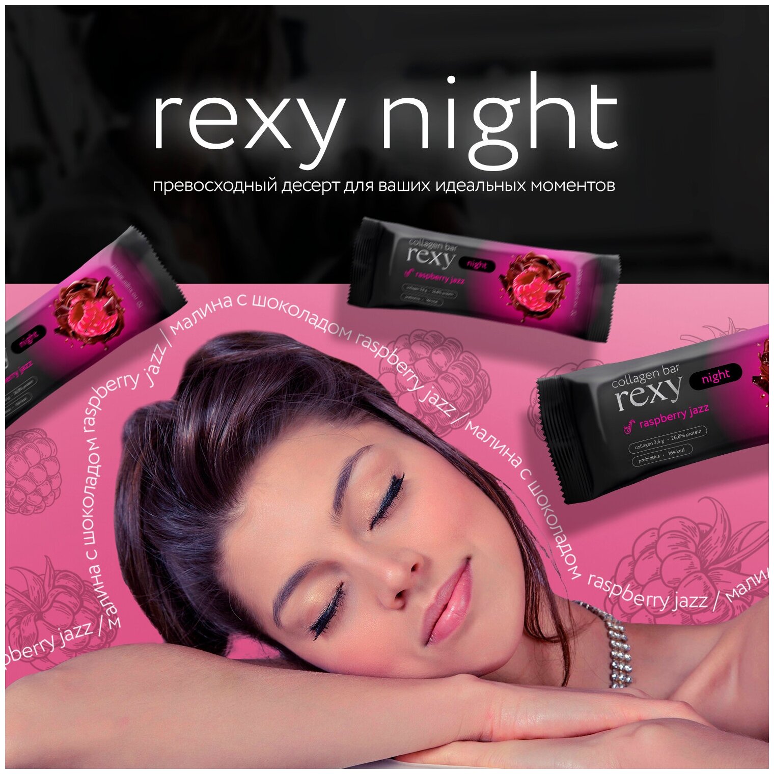 Купить Протеиновые батончики Rexy Night Малина без сахара, 18шт х 40г ПП сладости, низкокалорийные шоколадные спортивные батончики, десерты ProteinRex