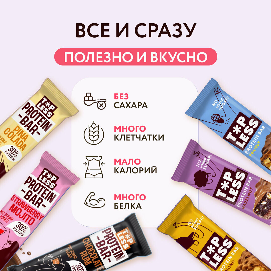СохранитьПротеиновые батончики FitnesSHOCK TOPLESS ассорти все вкусы 12 шт интересное: