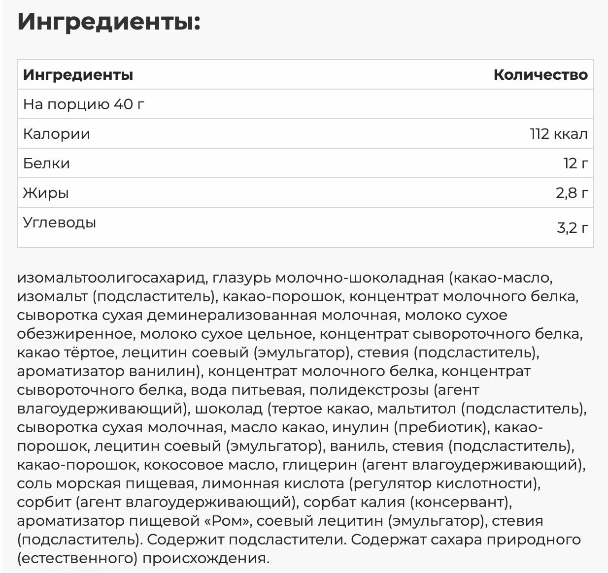 | Тип | конфета / протеиновый батончик / шоколад / энергетический батончик |