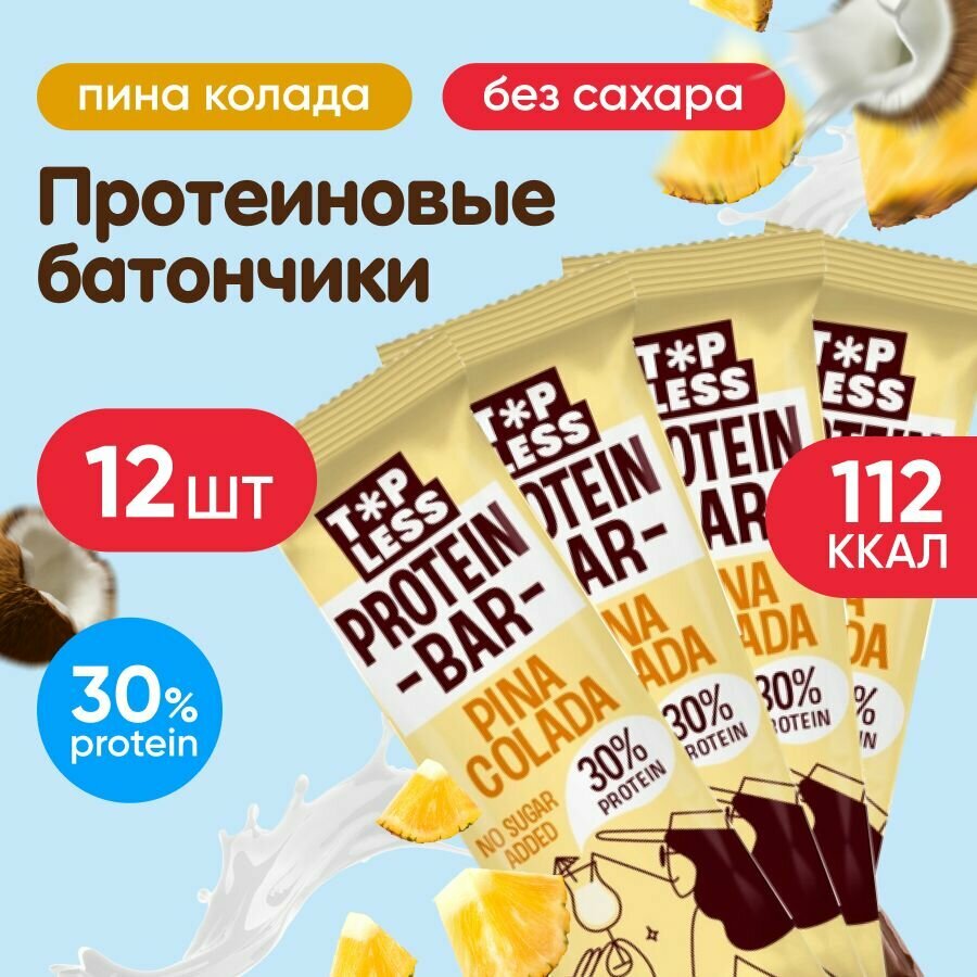 Купить Батончики протеиновые COCKTAIL TopLess Пиноколада FitnesSHOCK без сахара 40гр 12 шт