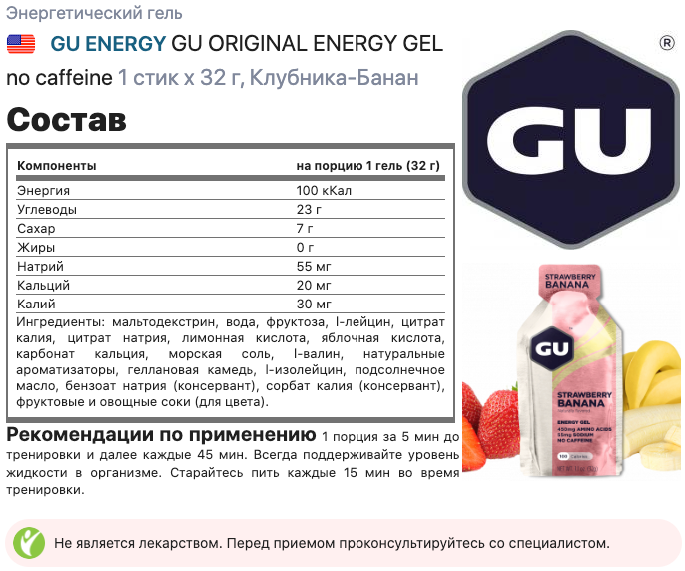 Энергетический гель питьевой GU ENERGY GU Original Energy Gel no caffeine 3 x 32 г, Клубника-Банан интересное: