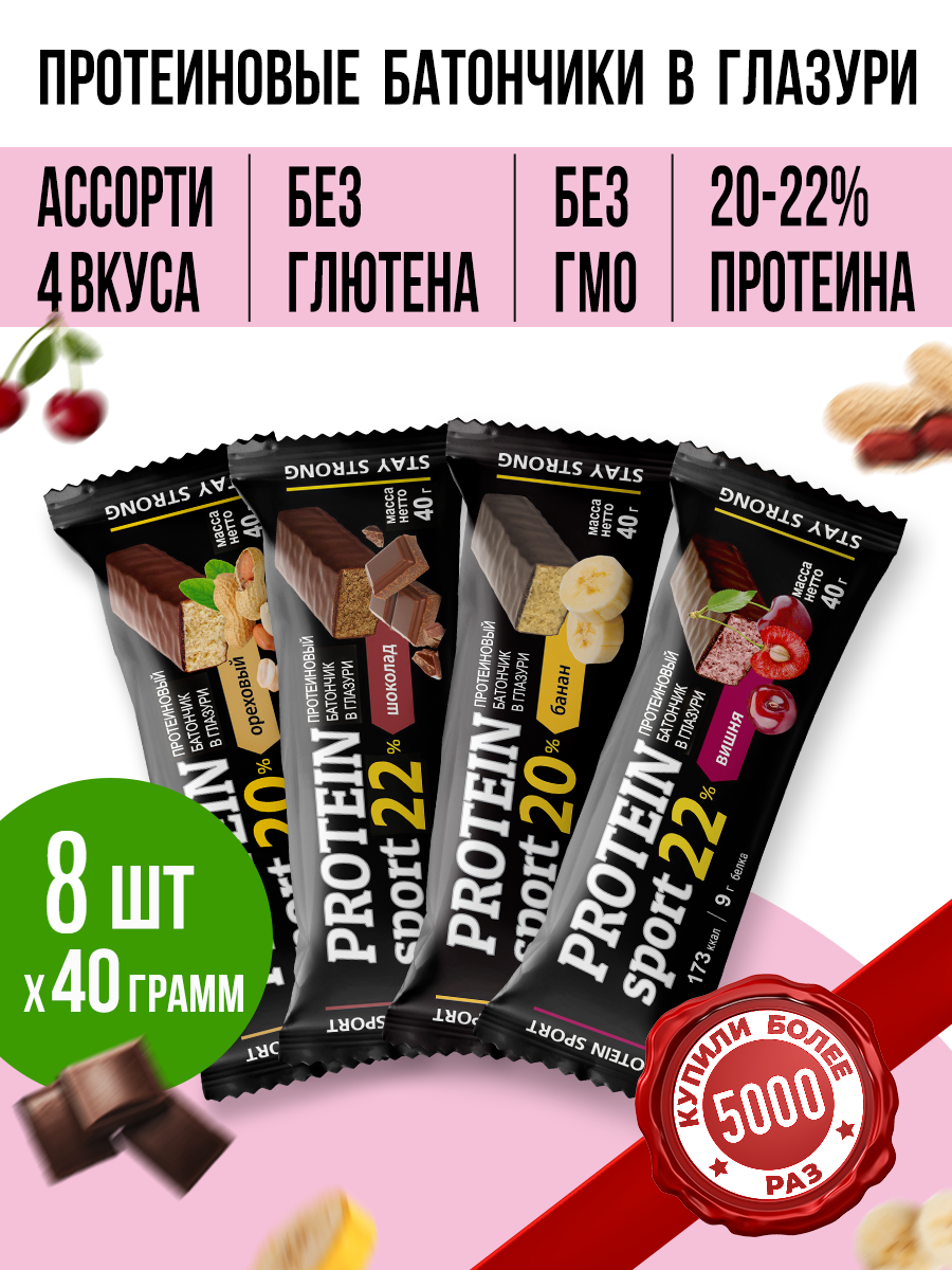 Протеиновый батончик EFFORT PROTEIN SPORT ассорти вкусов: банан, вишня, орех, шоколад 8 шт по 40 гр интересное: