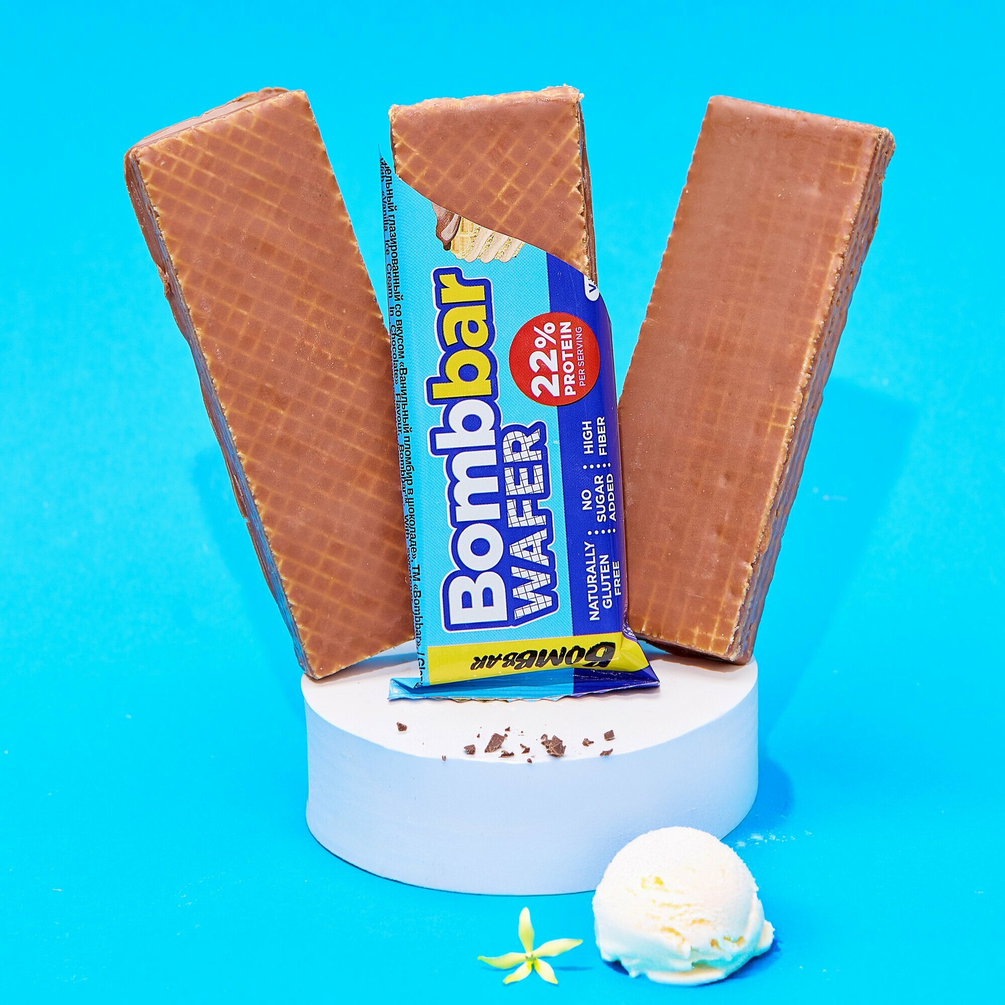 Вафельный протеиновый батончик BOMBBAR WAFER, Ванильное мороженое, 20 шт по 45 г