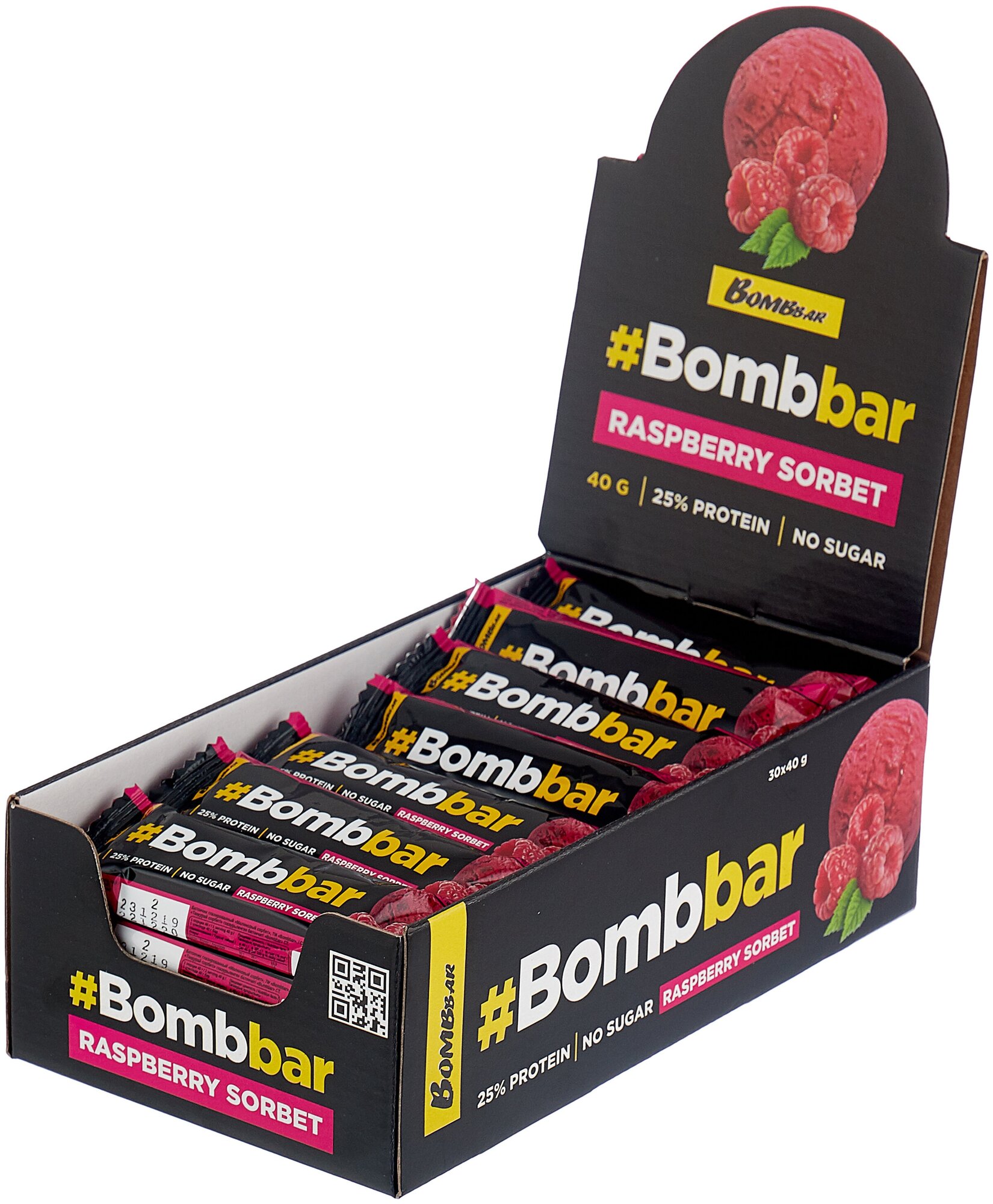Bombbar Протеиновые батончики в шоколаде без сахара Малиновый сорбет, 30шт х 40г