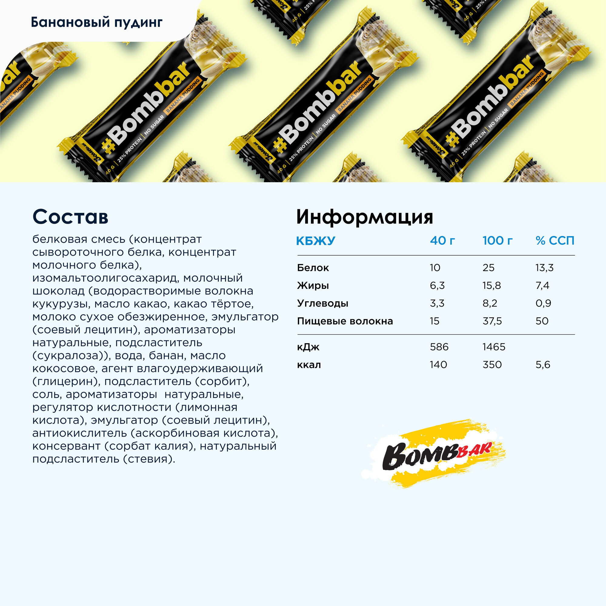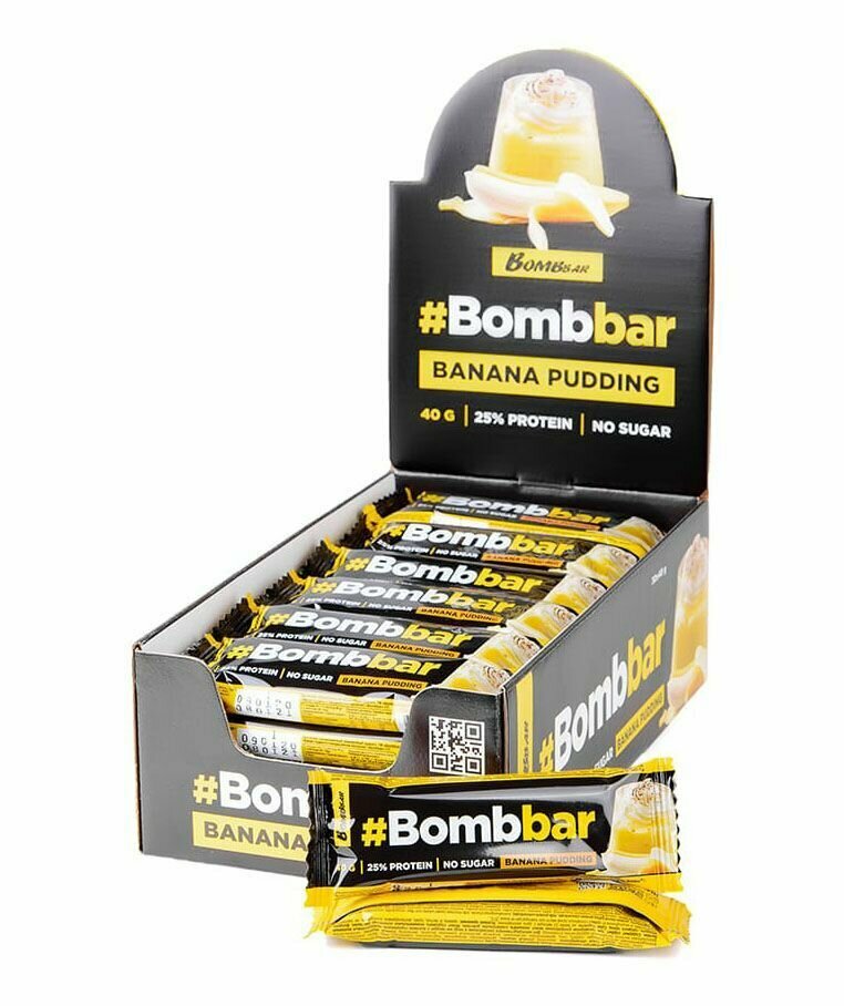 Протеиновые батончики Bombbar в шоколаде без сахара "Банановый пудинг", 30шт х 40г