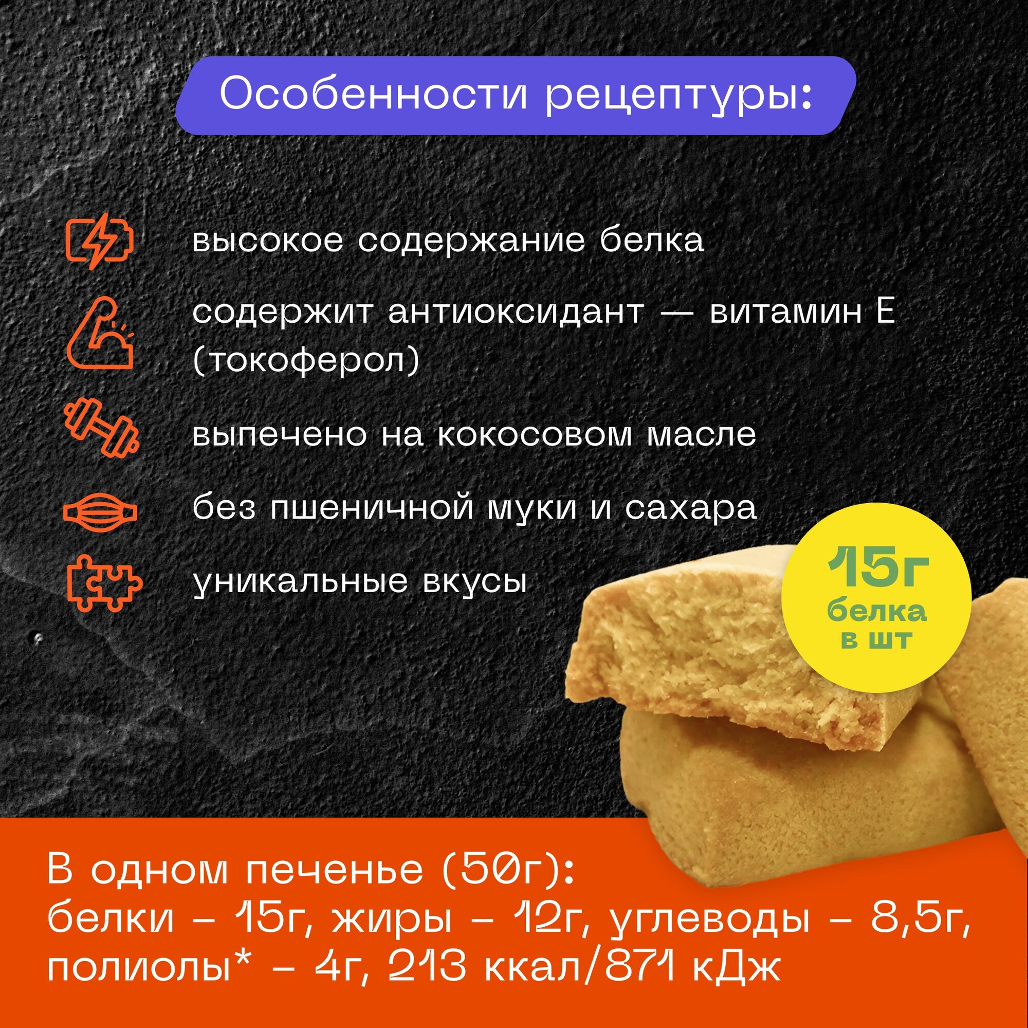 СохранитьПротеиновое печенье Pureprotein Salty Protein Cookie соленое с высоким содержанием белка ассорти со вкусами Арахис, Бекон и Пармезан 12шт*50г интересное: