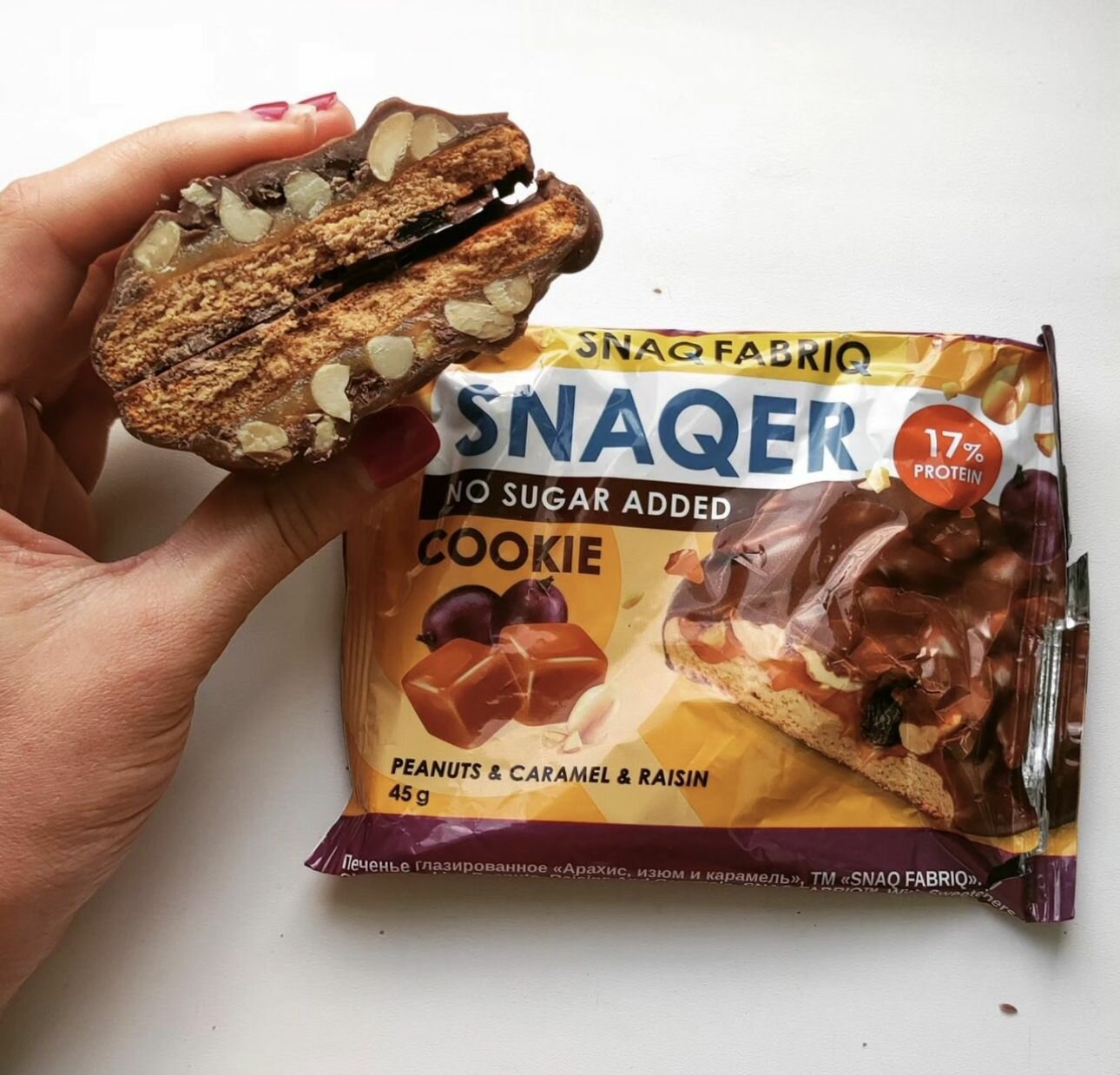 Протеиновое печенье SNAQER Арахис, изюм и карамель 45 гр (3 шт) интересное: