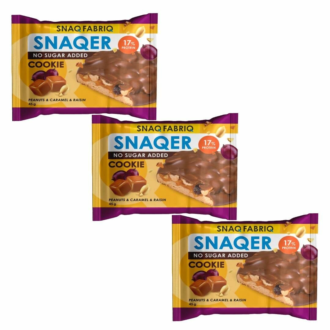 Купить Протеиновое печенье SNAQER Арахис, изюм и карамель 45 гр (3 шт)