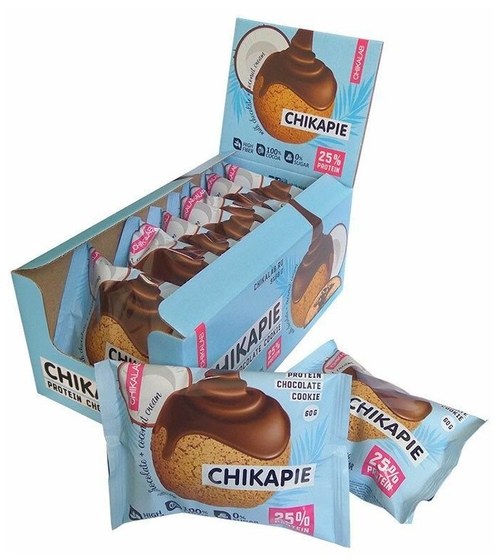 CHIKALAB CHIKAPIE Протеиновое печенье без сахара в шоколаде с начинкой "Кокос", 9шт х 60г
