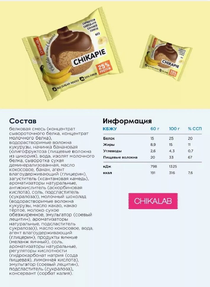 Протеиновое печенье CHIKALAB Chikapie, Банан (9шт по 60г)