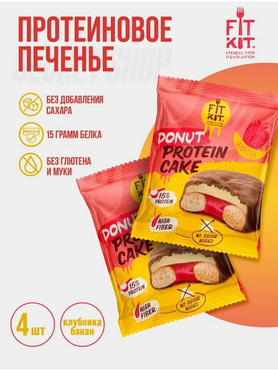 FIT KIT Печенье Protein Donuts со вкусом клубники и банана, 4 штуки по 100 грамм