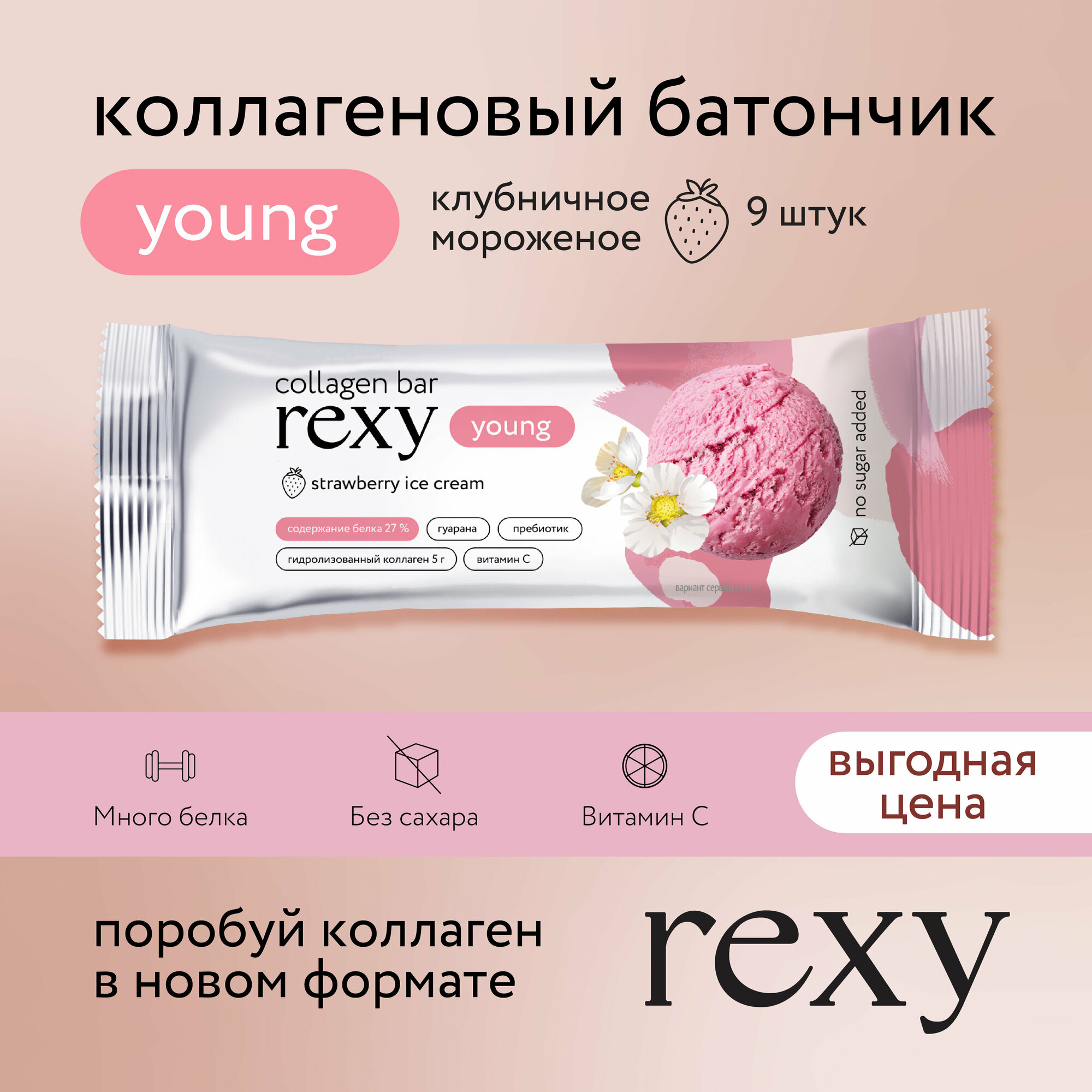 Купить Протеиновые батончики rexy YOUNG с коллагеном Клубничное мороженое, 9шт х 35г, 130ккал, спортивные батончики ProteinRex