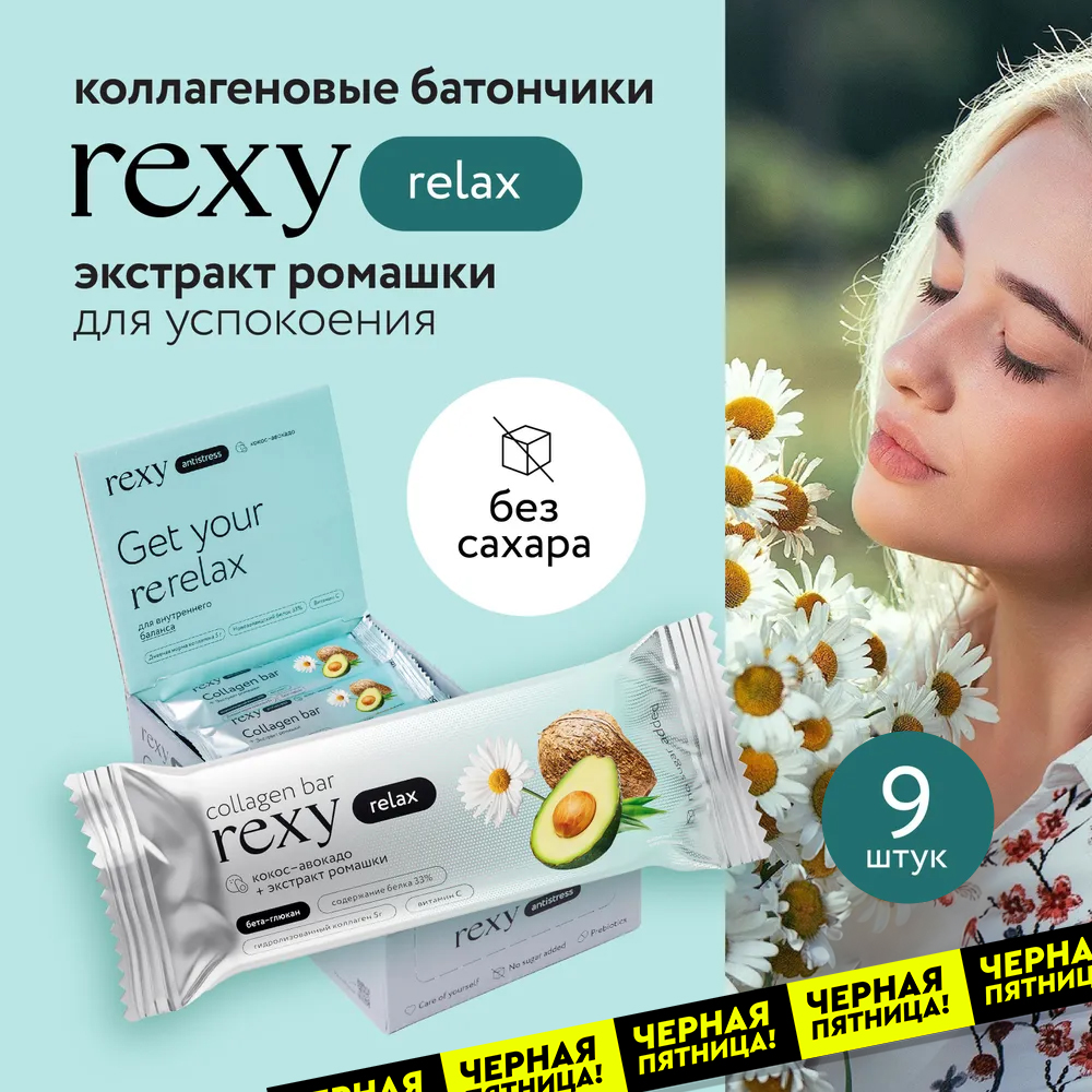 Купить Протеиновые батончики rexy с коллагеном Кокос- ромашка, 40г х 9шт, 140ккал без сахара ПП сладости, спортивные батончики ProteinRex