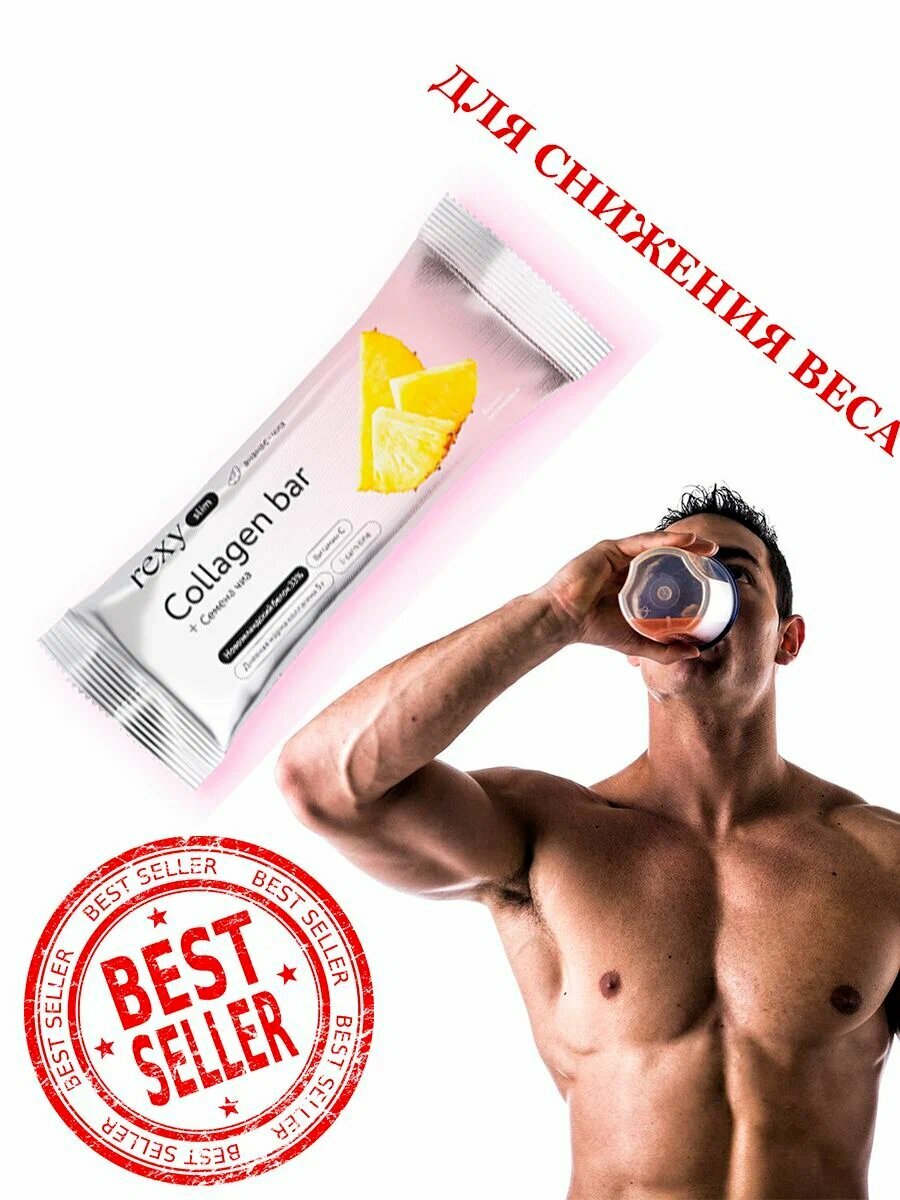 Купить Протеиновые батончики rexy с коллагеном Ананас-чиа, 40г х 9шт, 140ккал без сахара ПП сладости, низкокалорийные спортивные батончики десерты ProteinRex