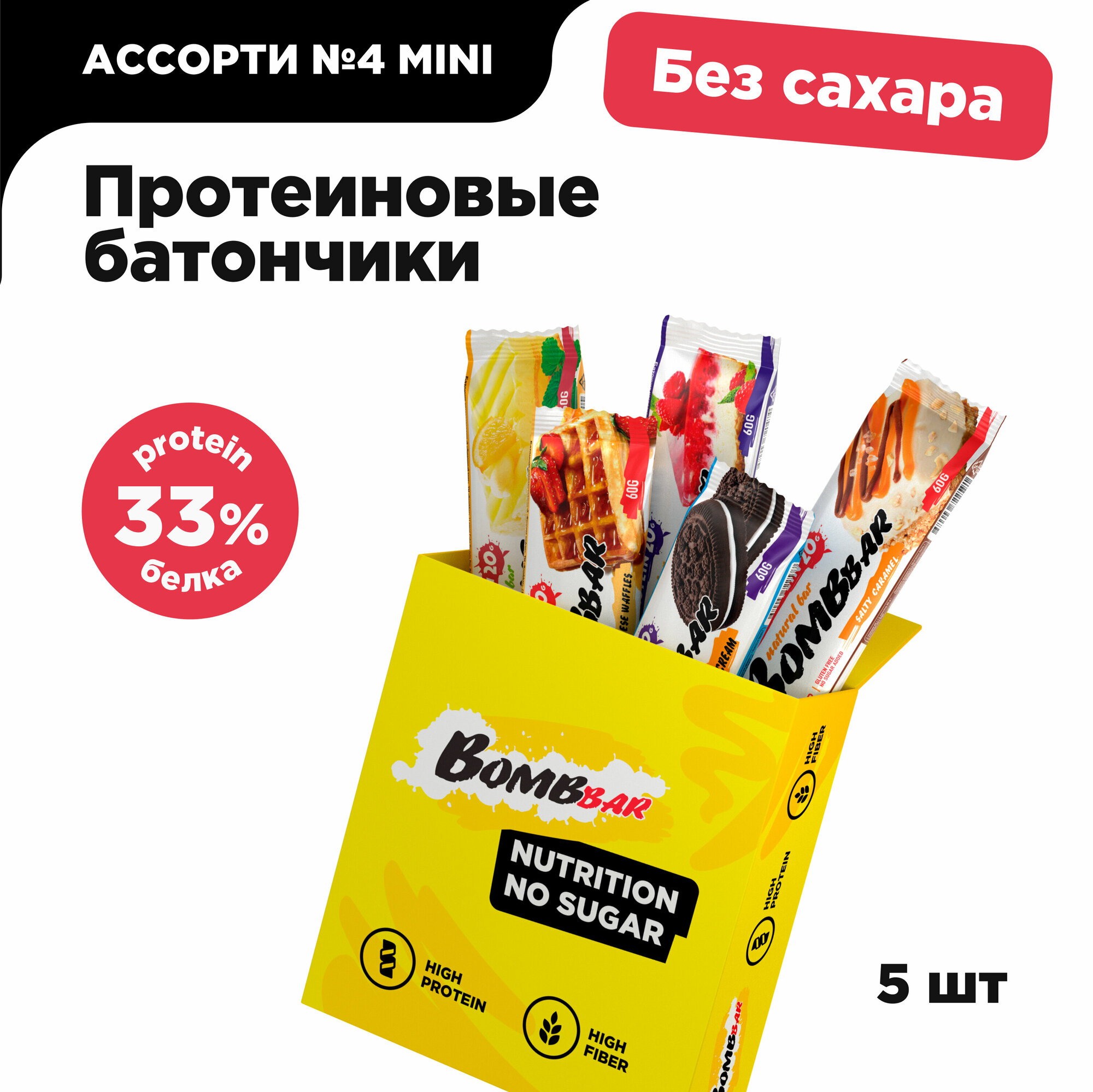 Bombbar Протеиновые батончики без сахара "Ассорти № 4" mini, 5шт х 60г / Протеин, еда, пп интересное: