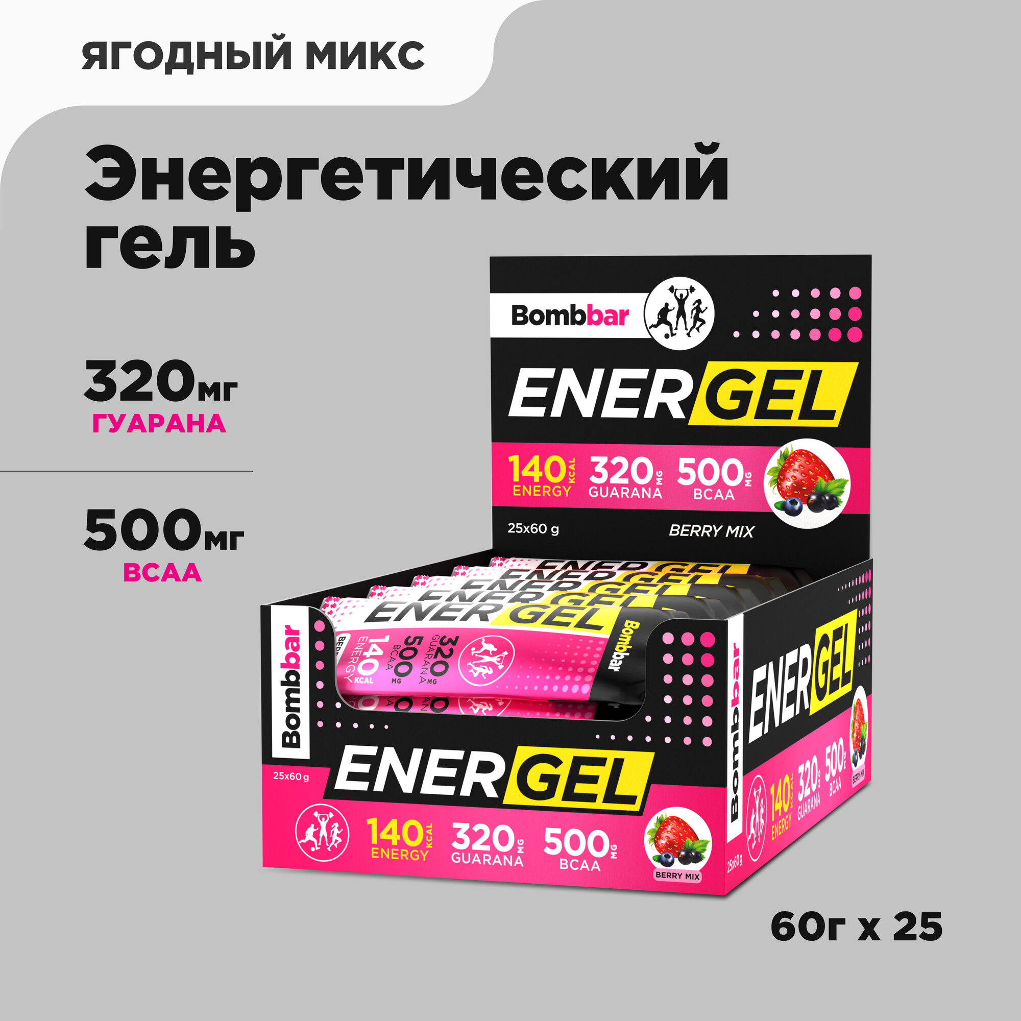 Энергетический гель BOMBBAR EnerGel, Ягодный микс (25шт по 60г)