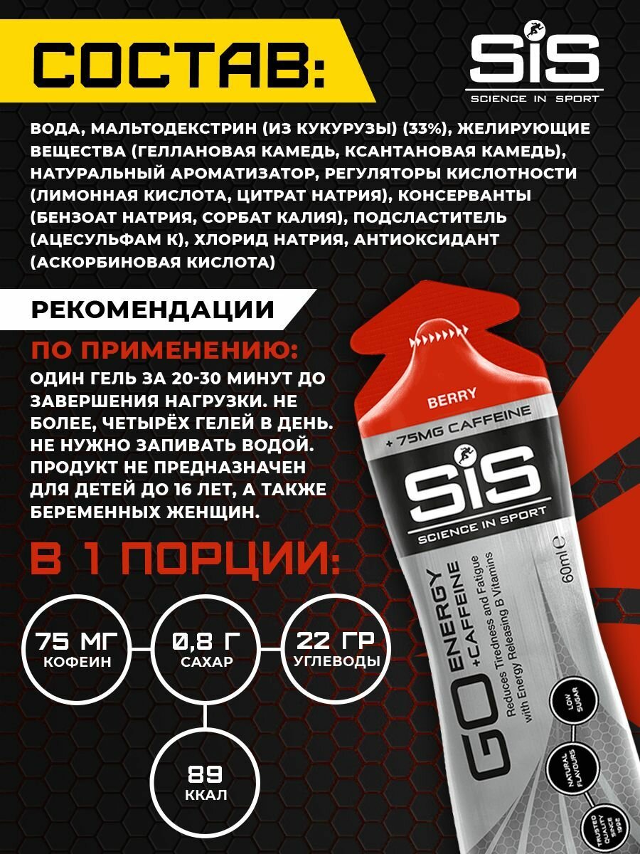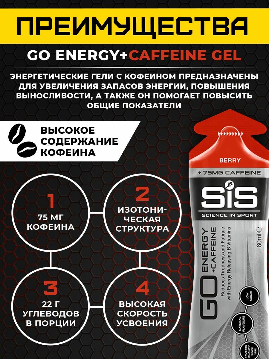 Гель энергетический с кофеином 75 мг SIS Go PLUS Caffeine Gel, Ягоды, 60мл интересное: