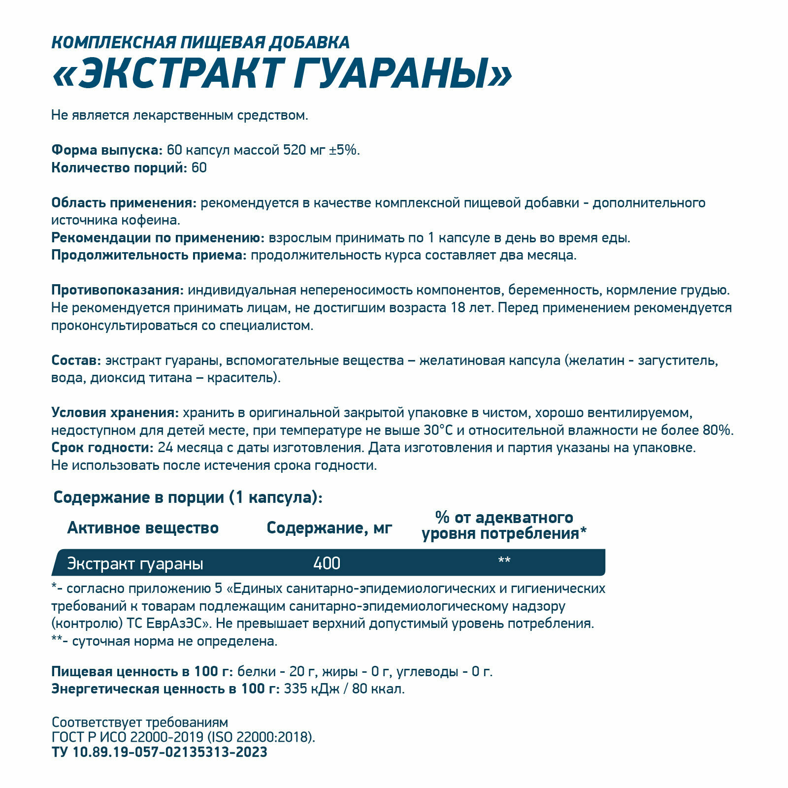 Капсулы GUARANA capsules 60 cap интересное: