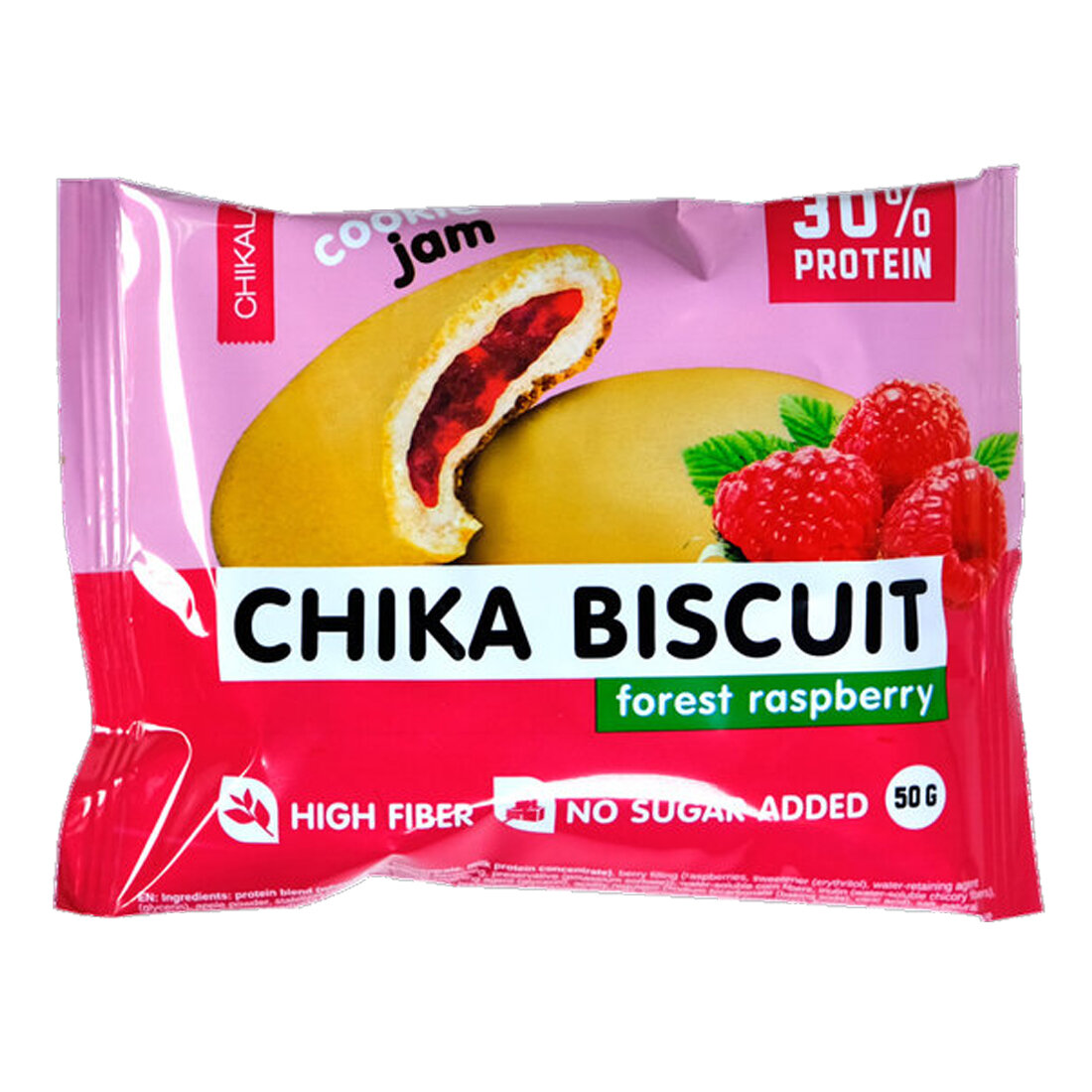 Chikalab CHIKA BISCUIT Протеиновое печенье без сахара с начинкой "Лесная малина", 9шт х 50г
