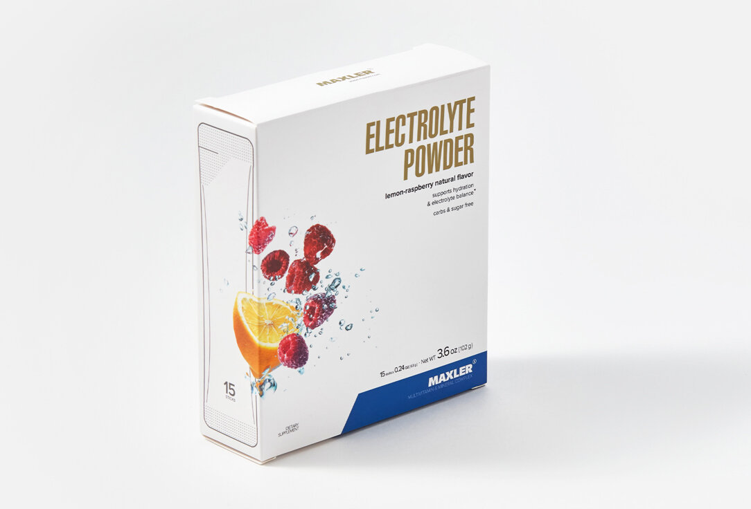 Купить Электролиты Maxler Electrolyte Powder со вкусом Лимон-малина, 15х6,8 г, Поддержка электролитного баланса, Комплекс микроэлементов