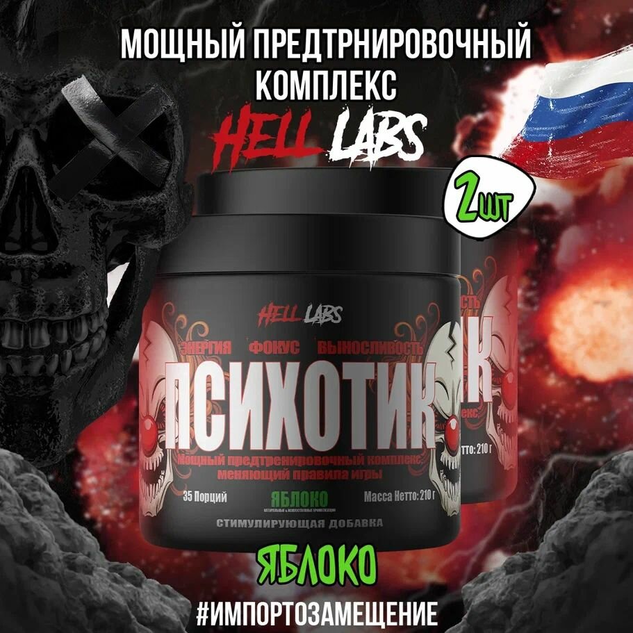 Купить "Hell Labz Psychotic" - Предтреник с яблочным вкусом, 420 грамм, 2 банки