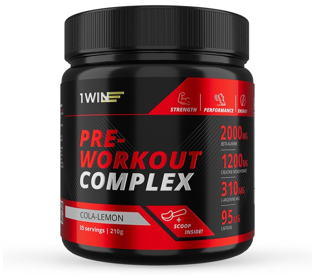 Купить 1WIN Предтренировочный комплекс энергетик Pre-workout, вкус Кола-Лимон, 35 порций