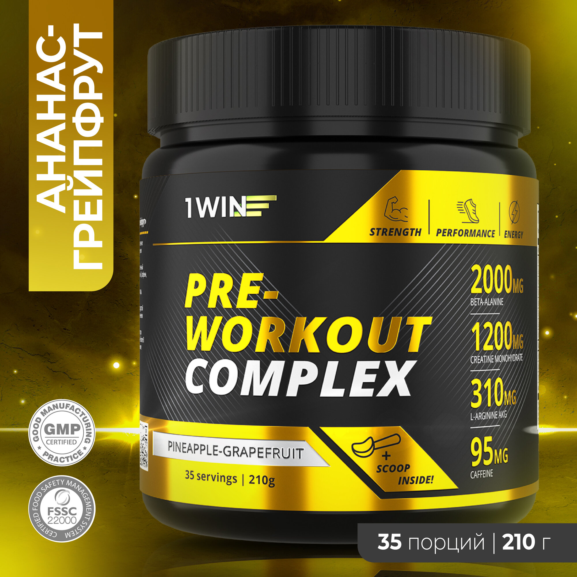 Купить 1WIN Предтренировочный комплекс энергетик Pre-workout, вкус Ананас-Грейпфрут, 35 порций