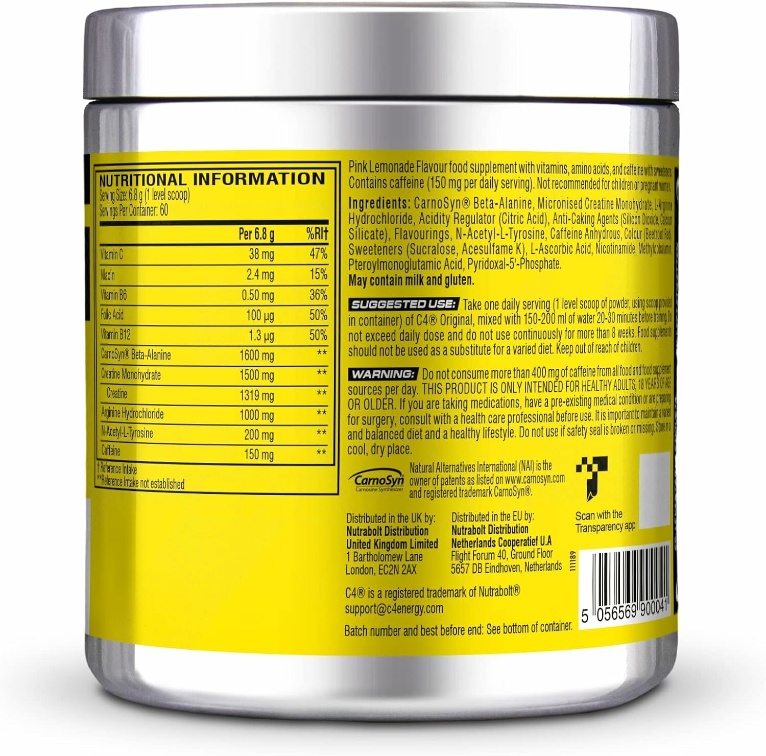 | Диетические особенности | без аспартама / без глютена / без лактозы / без мальтодекстрина / без сукралозы / веганский / вегетарианский / содержит оксид азота |