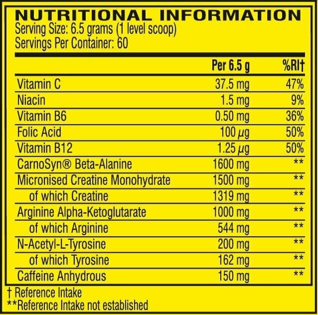 | Основные ингредиенты | BCAA / аргинин / бета-аланин / витамины и минералы / кофеин / креатин |