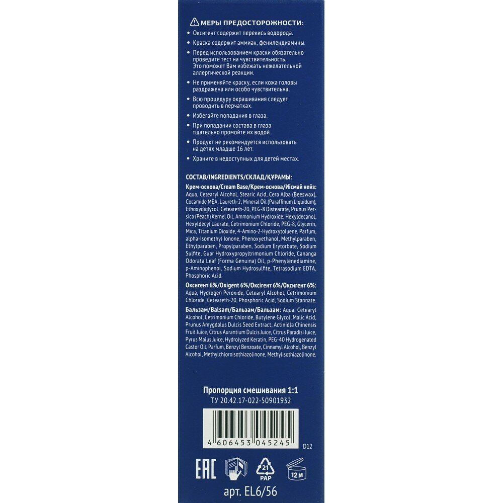 | Дополнительная информация | тест на чувствительности: приготовьте смесь из небольшого количества крем-основы и такого же объёма оксигента, перемешав их в любой неметаллической посуде. Не следует готовить весь объем краски. Нанесите приготовленную смесь на небольшой участок кожи на внутренней стороне локтевого сгиба или за ухом и оставьте на 10-15 минут. Затем смойте. Если в течение суток признаки аллергической реакции не появились, можете использовать краску |
