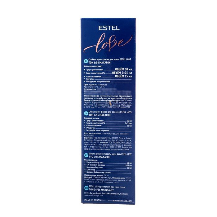 Ниже Вы можете прочитать отзывы на ESTEL Love Стойкая крем-краска для волос, 6/56 махагон, ознакомится с подробными характеристиками, посмотреть интересные обзоры и фотографии на ESTEL Love Стойкая крем-краска для волос, 6/56 махагон.