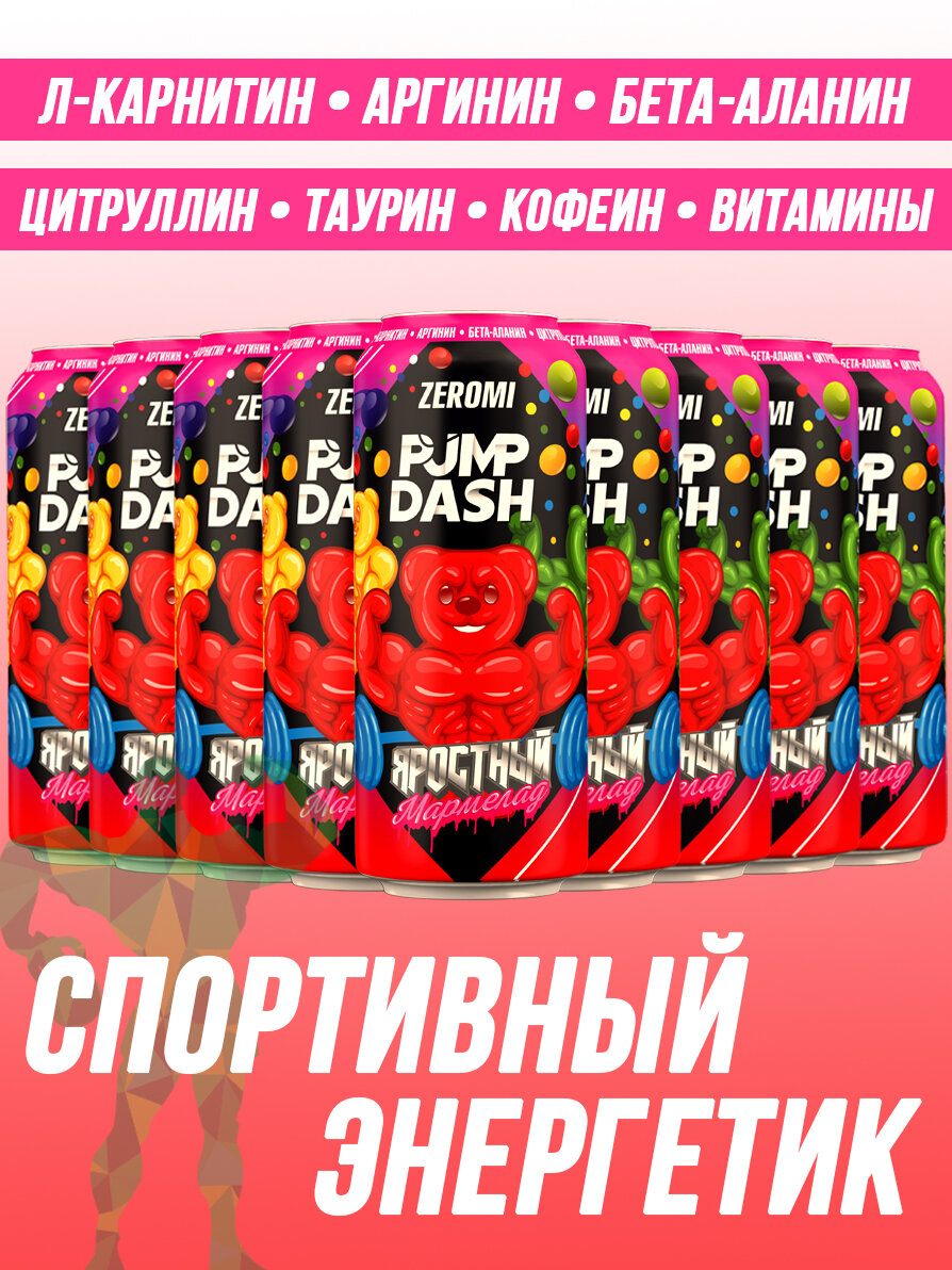 Купить Энергетик спортивный Zeromi Pre-Workout Pump Dash, 12 шт х 500 мл, яростный мармелад