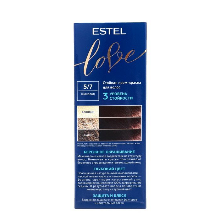Ниже Вы можете прочитать отзывы на ESTEL Love Стойкая крем-краска для волос, 5/7 шоколад, ознакомится с подробными характеристиками, посмотреть интересные обзоры и фотографии на ESTEL Love Стойкая крем-краска для волос, 5/7 шоколад.