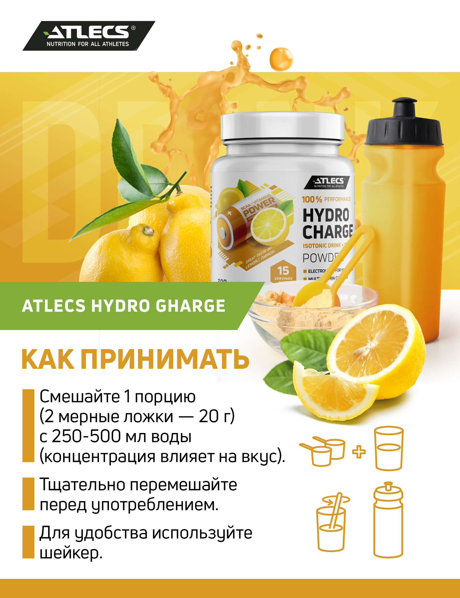 Atlecs Hydro Charge 300 g (лимон) интересное: