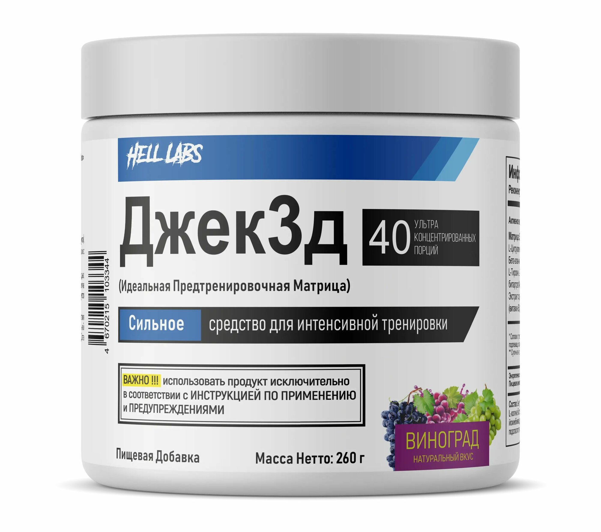 Предтренировочный комплекс Hell Labs Jack3D, 260 гр, виноград интересное: