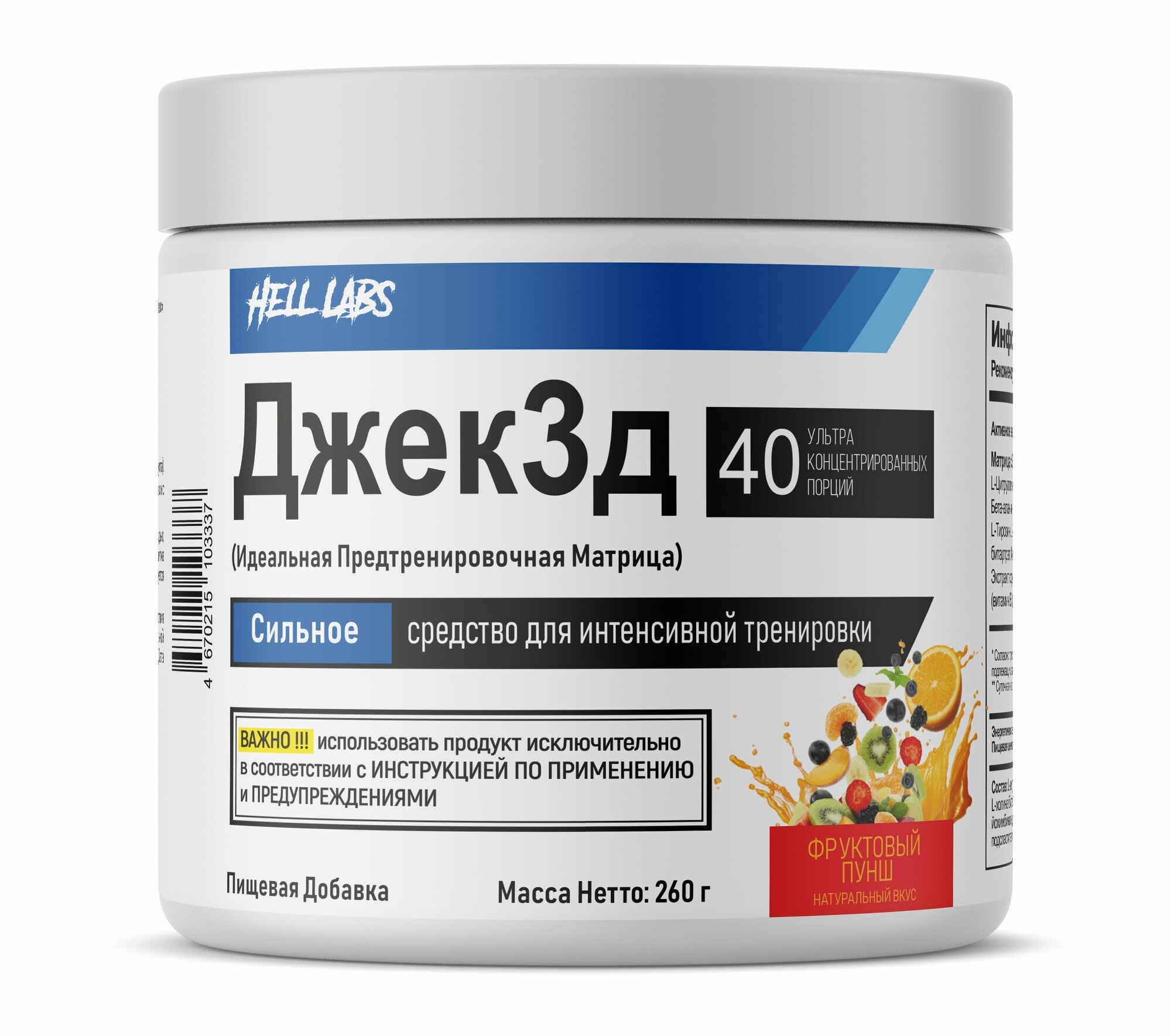Предтренировочный комплекс Hell Labs Jack3D 260 гр (Фруктовый пунш) интересное: