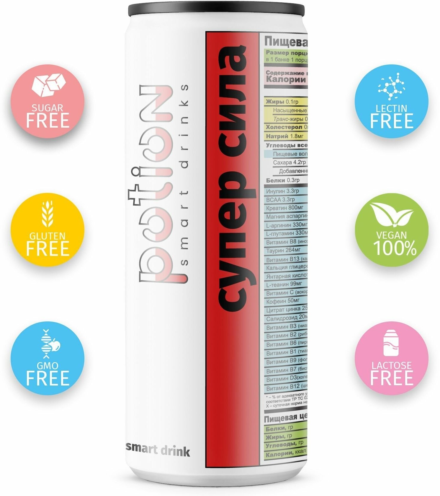 Спортивный энергетик без сахара Супер сила / Potion Smart Drinks Super Strength, 330 мл интересное: