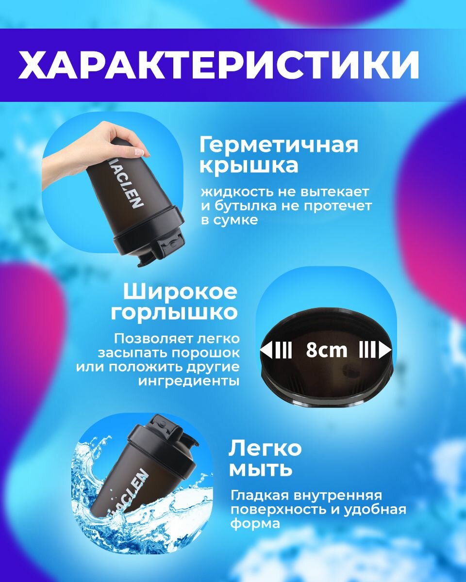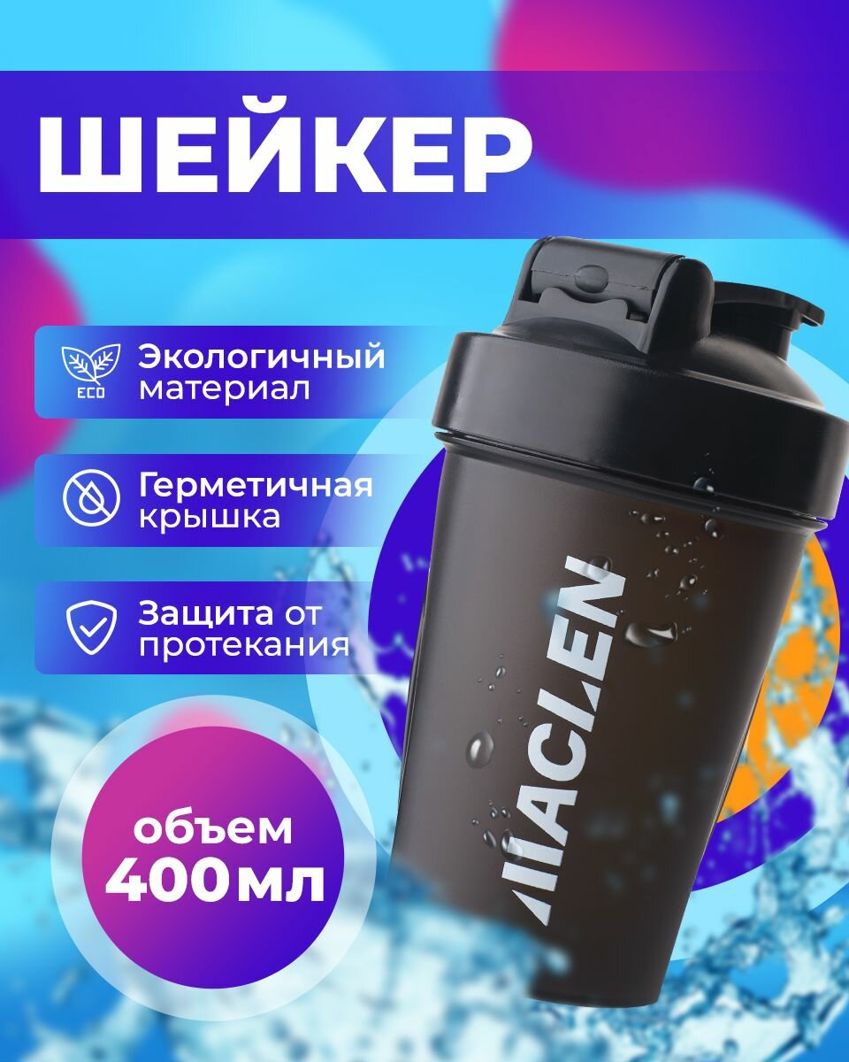 Шейкер спортивный с венчиком MACLEN, 400 мл, черный интересное: