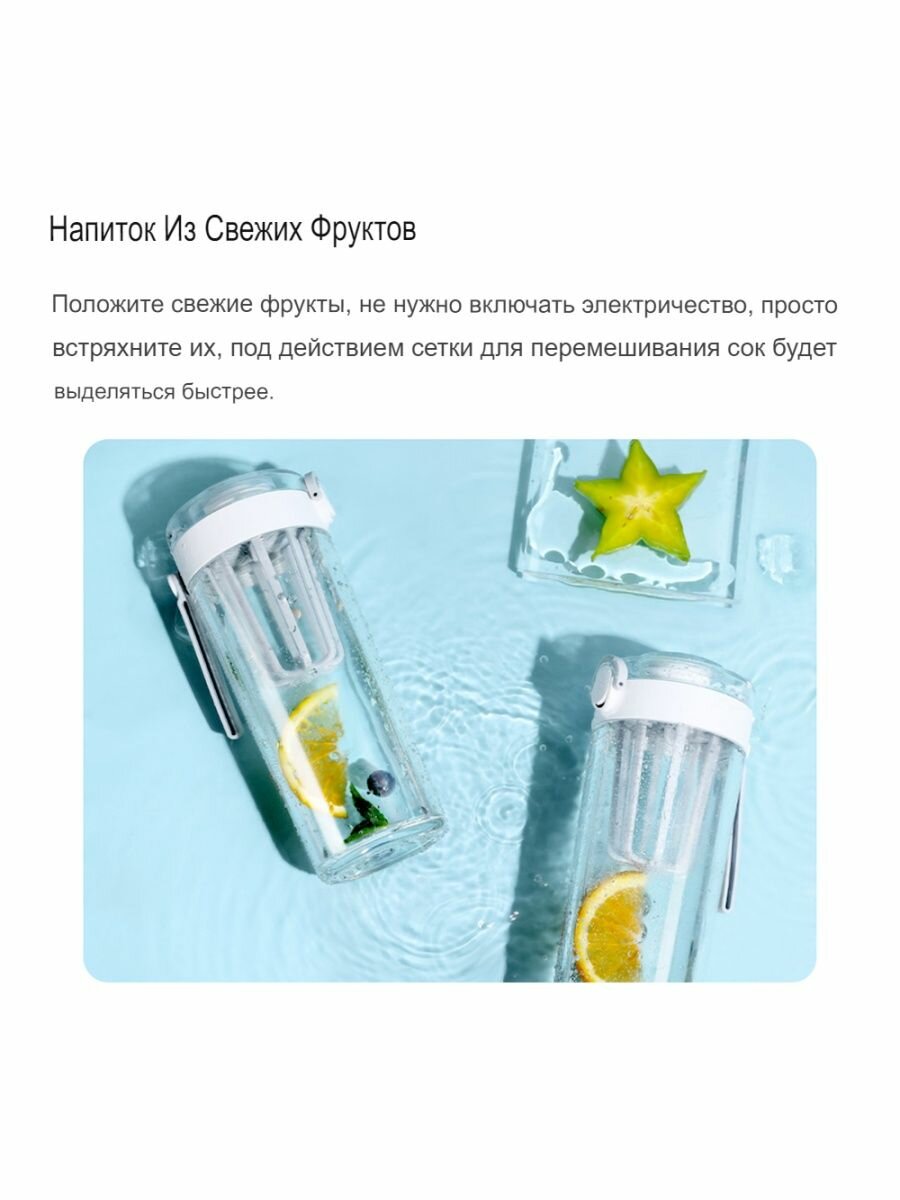 Бутылка Xiaomi Mijia Tritan Water Cup 600мл, с удобным перемешиванием протеиновых коктейлей, смузи и детского питания, белая
