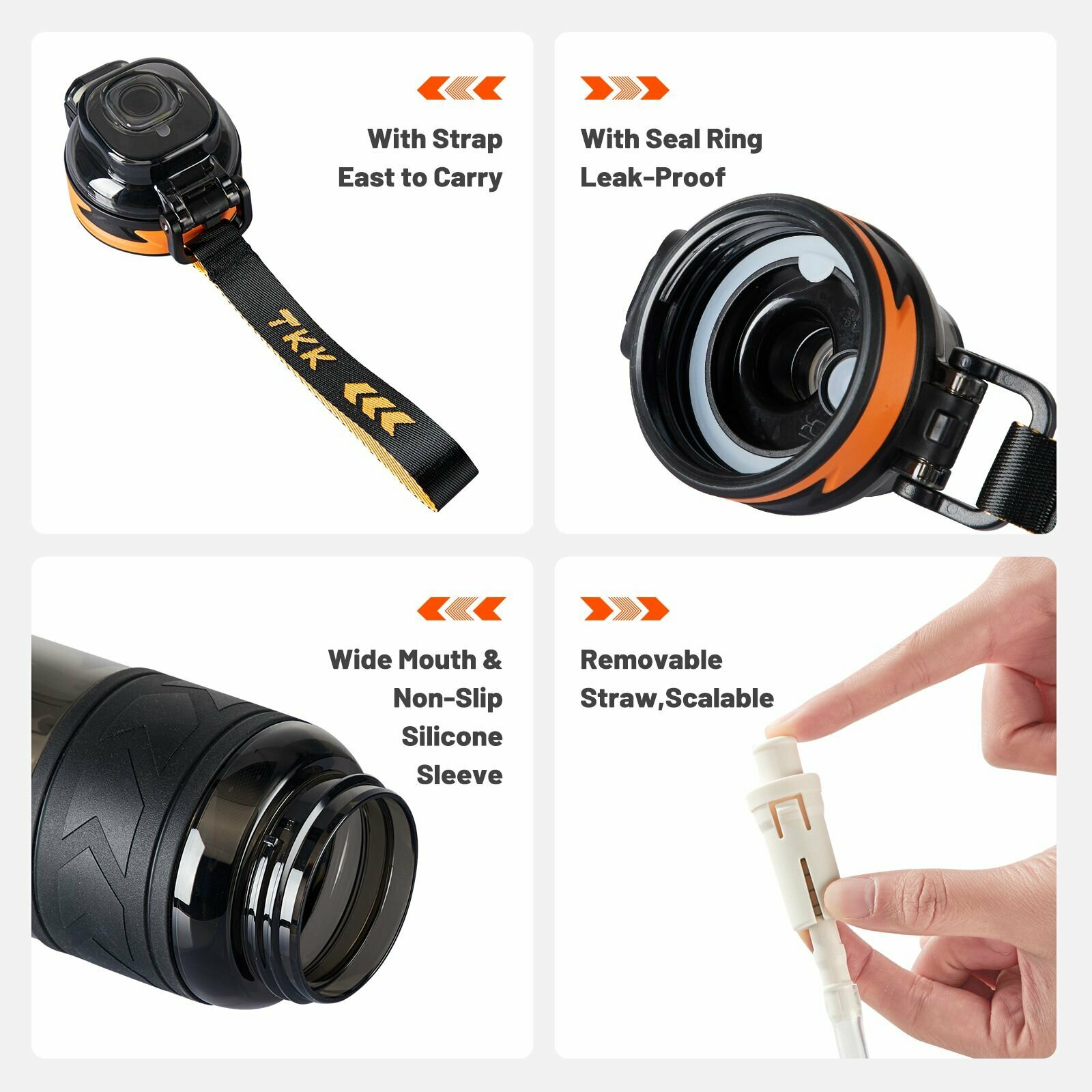 Купить Спортивная фитнес бутылка фляга для воды TKK Premium из тритана с трубочкой, 1000 мл, чёрная