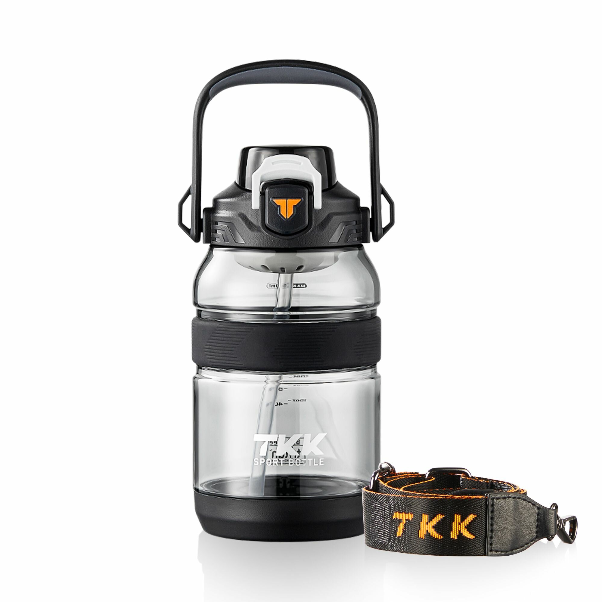 Купить Спортивная фитнес бутылка фляга для воды TKK Premium из тритана с трубочкой, 2000 мл, чёрная