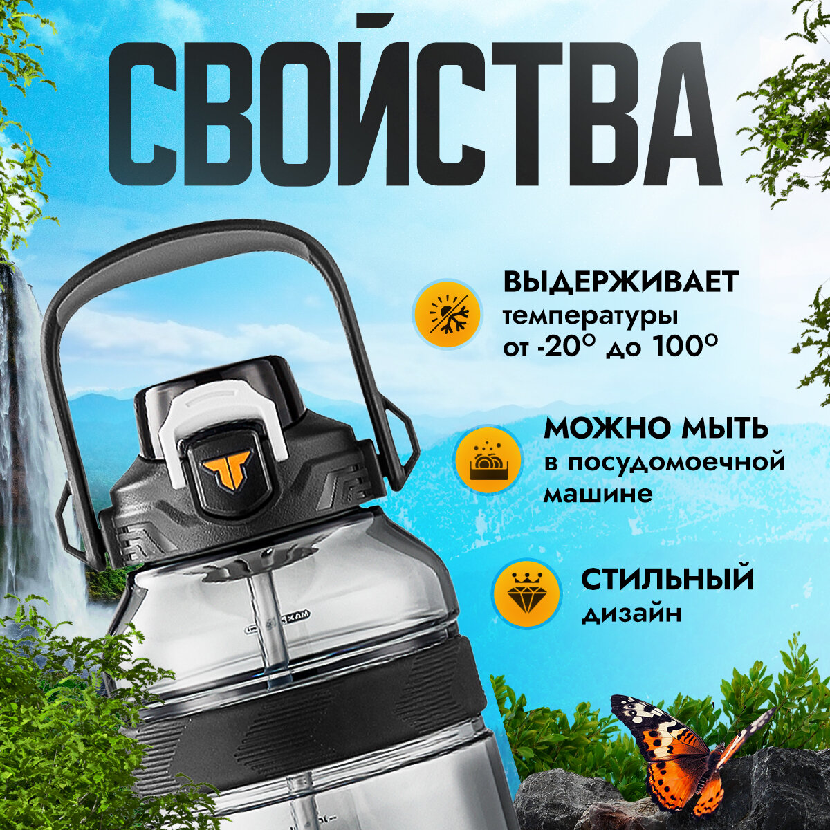 Ниже Вы можете прочитать отзывы на Спортивная фитнес бутылка фляга для воды TKK Premium из тритана с трубочкой, 2000 мл, чёрная, ознакомится с подробными характеристиками, посмотреть интересные обзоры и фотографии на Спортивная фитнес бутылка фляга для воды TKK Premium из тритана с трубочкой, 2000 мл, чёрная.