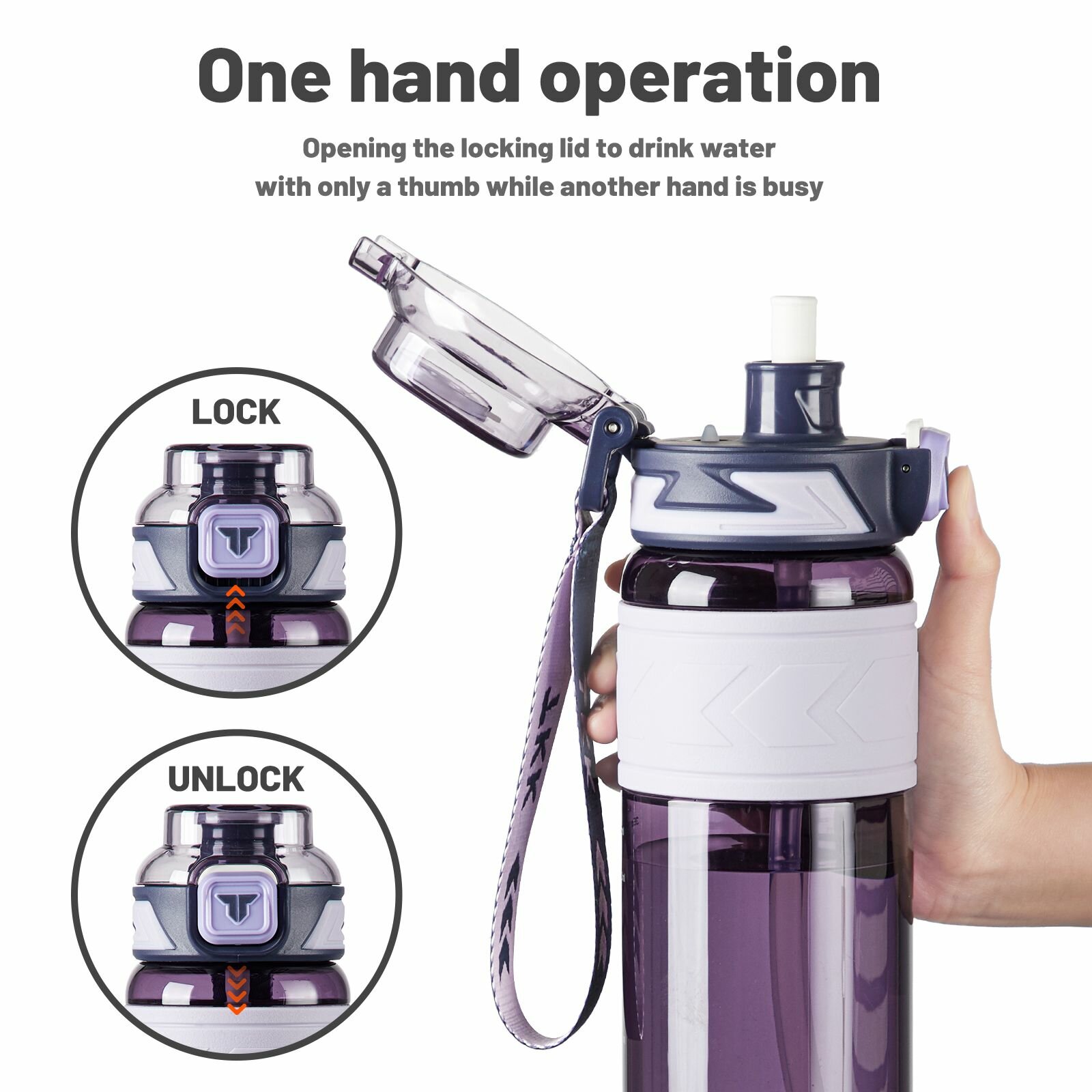 Спортивная фитнес бутылка фляга для воды TKK Premium из тритана с трубочкой, 1000 мл, фиолетовая