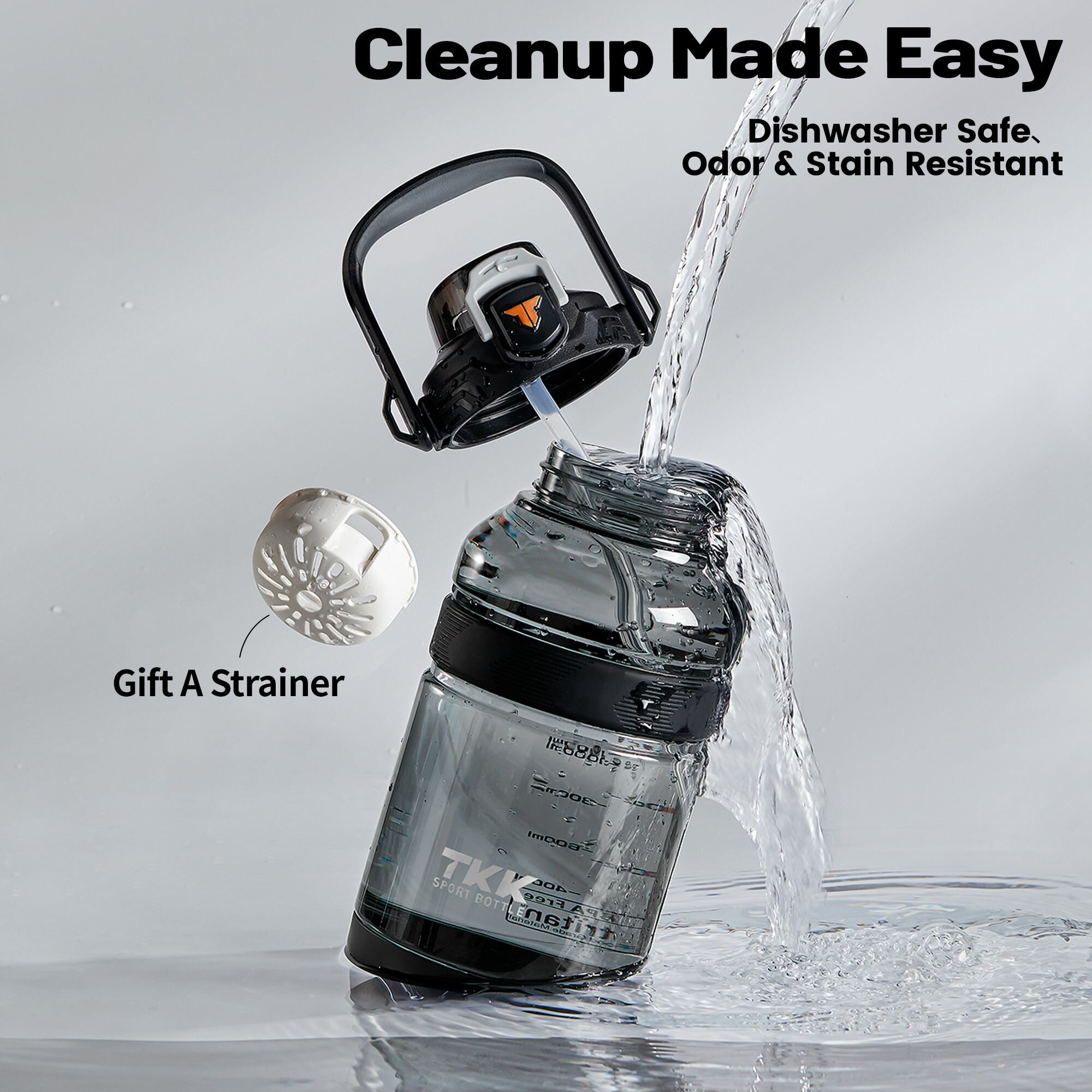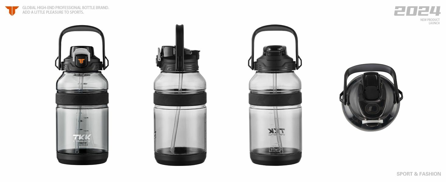 Спортивная фитнес бутылка фляга для воды TKK Premium из тритана с трубочкой, 2100 мл, чёрная