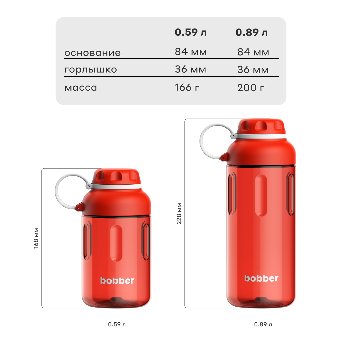 Бутылка для воды спортивная Bobber Tritan красный, 590 мл