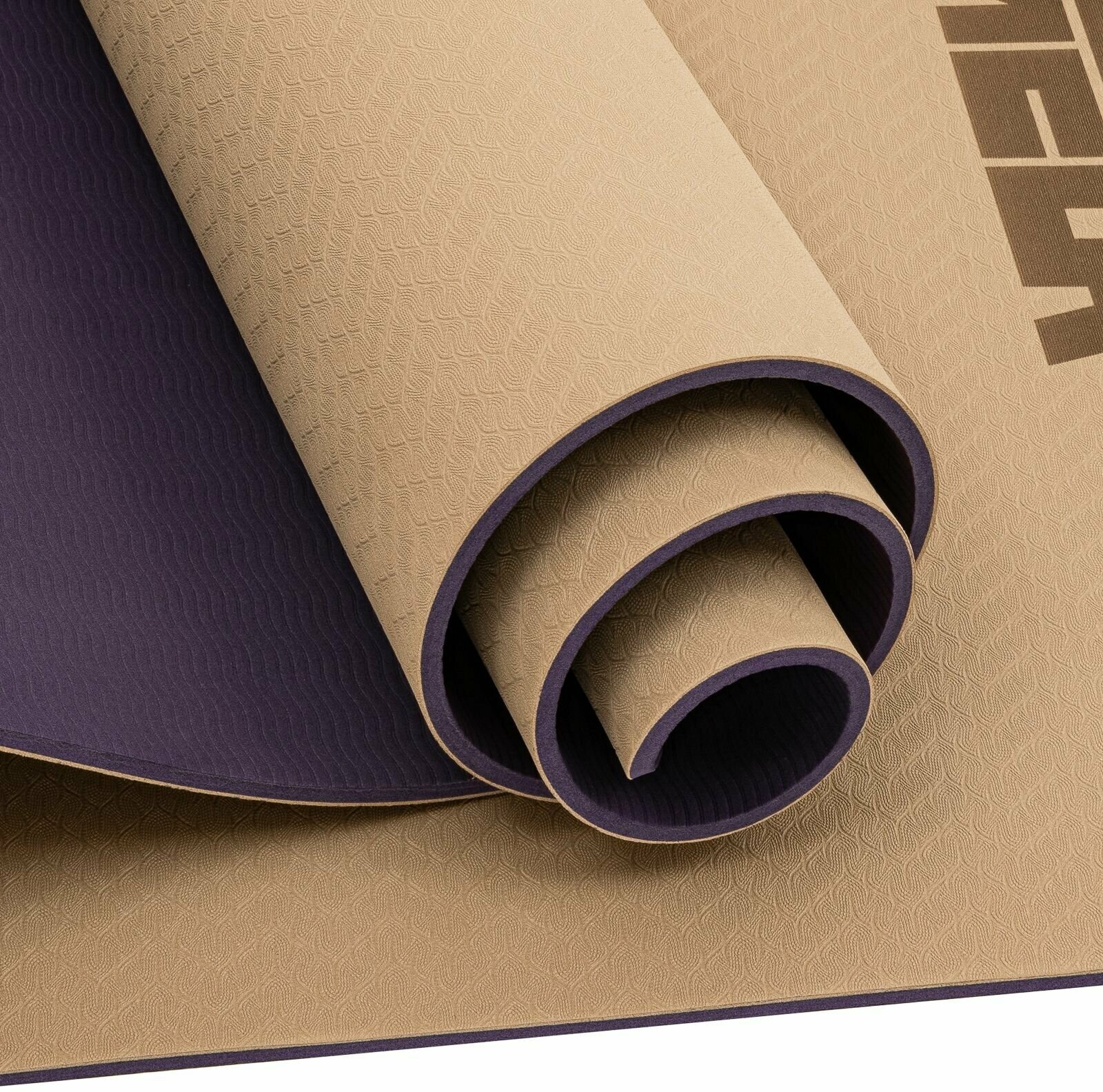 Спортивный тренировочный коврик, Hamsa Yoga, Для йоги и фитнеса с покрытием TPE+TC, Гимнастический инвентарь для фитнеса, Размер 183х61х0.6 см.