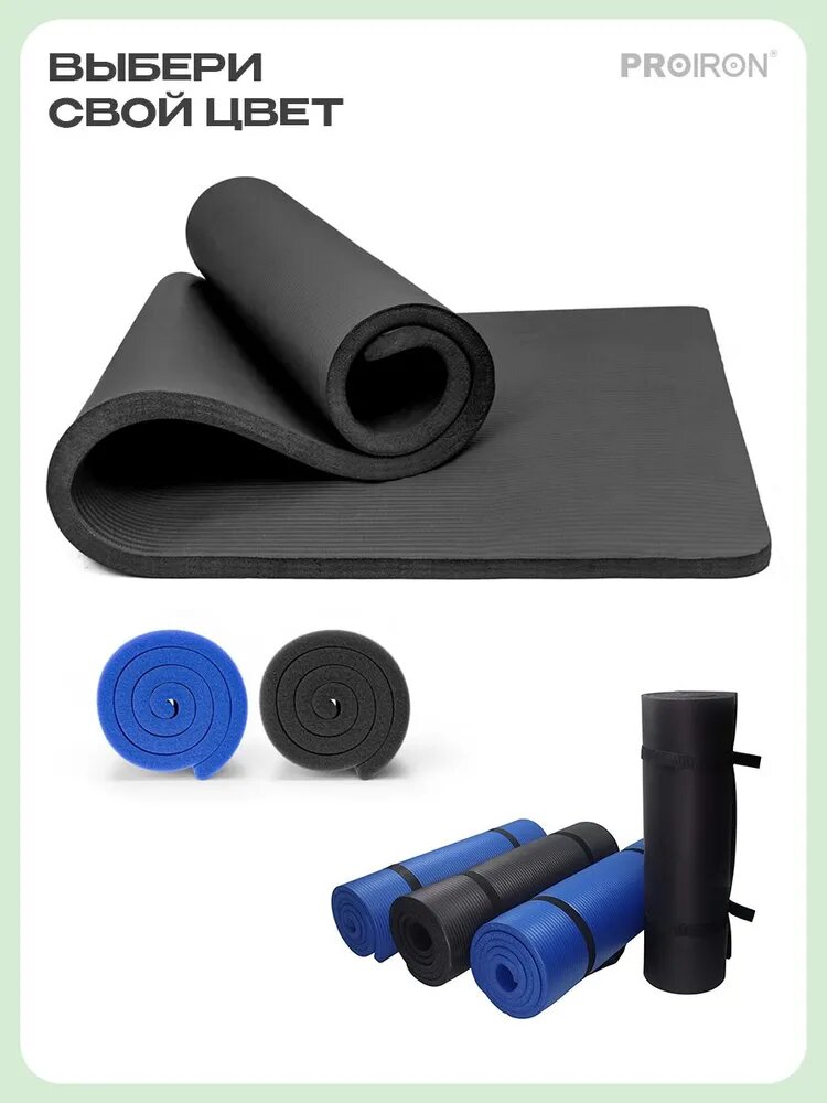 Коврик для фитнеса и йоги нескользящий PROIRON, размеры 1800*610*15 мм, черный интересное: