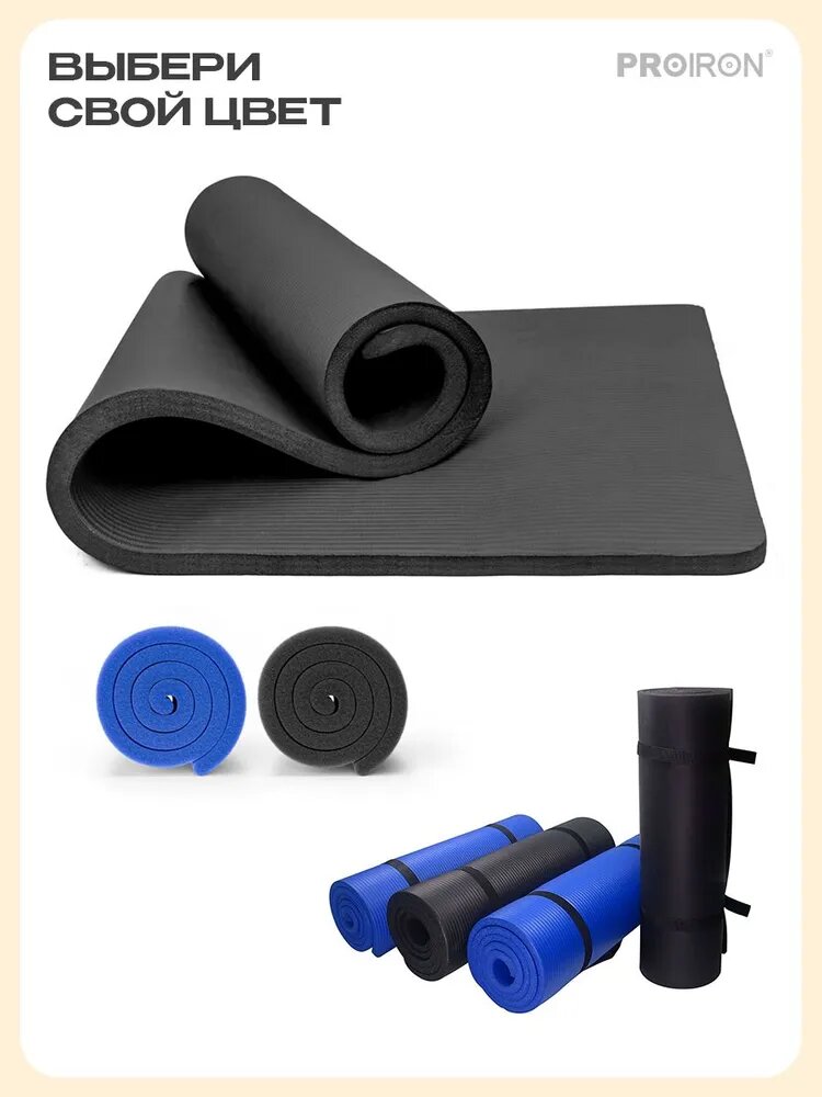Коврик для фитнеса и йоги нескользящий PROIRON, размеры 1800*610*15 мм, синий интересное: